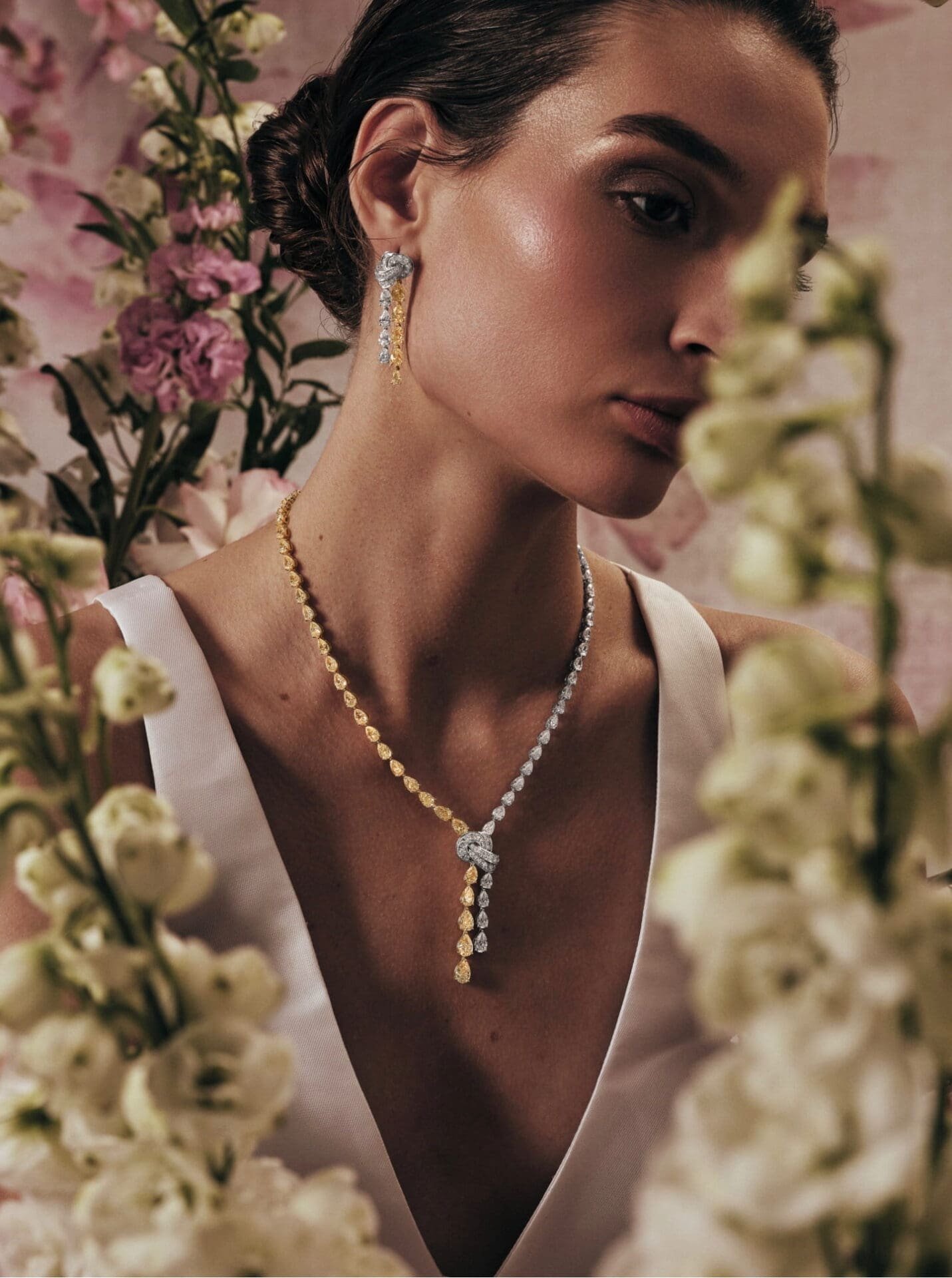Exceptional materials define the heart of the edit. Every jewel is handcrafted by award-winning artisans using natural diamonds and rare gemstones sourced from across the globe. Fancy yellow and white diamonds are complemented by vivid sapphires, emeralds, and rubies, creating a palette that draws from regal tradition while embracing modern sophistication.