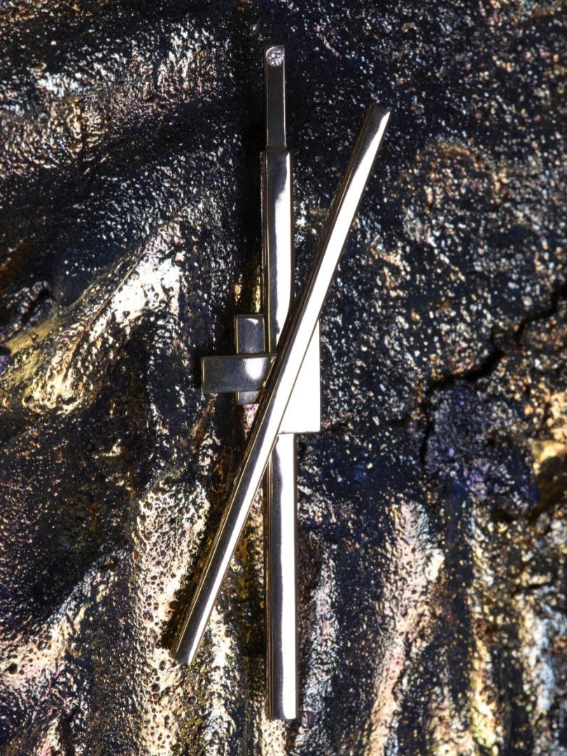 Crafted in 18K champagne gold and crowned with a 2.10 mm round diamond, the brooch captures a delicate balance between complexity and clarity. Every angle, chamfer, and line was refined through both traditional wax and 3D resin modeling — a technical achievement that elevates craftsmanship to near-sculptural perfection. Despite its clean simplicity, the brooch carries a quiet tension: between fragility and endurance, between art and adornment.
