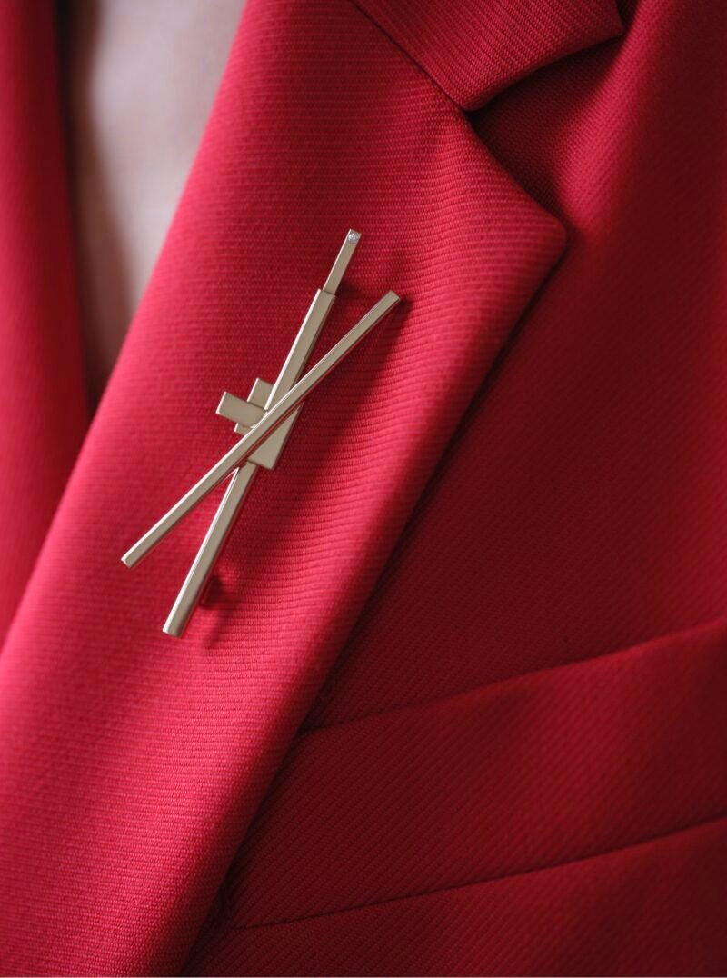Ruby, celebrated for his multidisciplinary works spanning sculpture, ceramics, and painting, brings his conceptual rigor to Repossi’s avant-garde universe. “Repossi’s approach is architectural and minimalist, yet open to disruption,” he says. This openness finds its echo in the brooch’s design, which draws from Ruby’s REIF series — wall-mounted reliefs assembled from salvaged wood and fragments of his late mother’s Pennsylvania barn. Reimagined in precious materials, the piece transforms humble origins into a constructivist masterpiece.