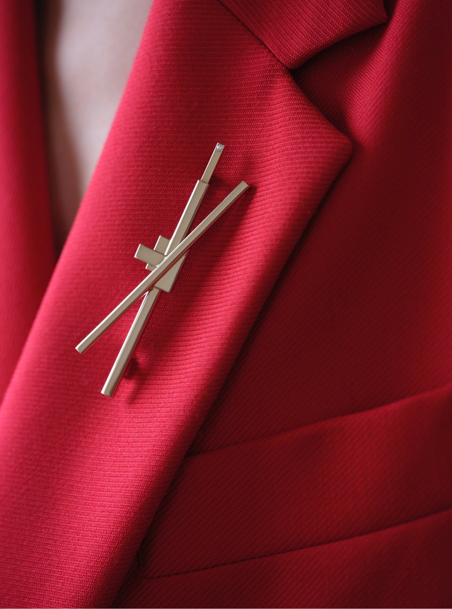 Crafted in 18K champagne gold and crowned with a 2.10 mm round diamond, the brooch captures a delicate balance between complexity and clarity. Every angle, chamfer, and line was refined through both traditional wax and 3D resin modeling — a technical achievement that elevates craftsmanship to near-sculptural perfection. Despite its clean simplicity, the brooch carries a quiet tension: between fragility and endurance, between art and adornment.
