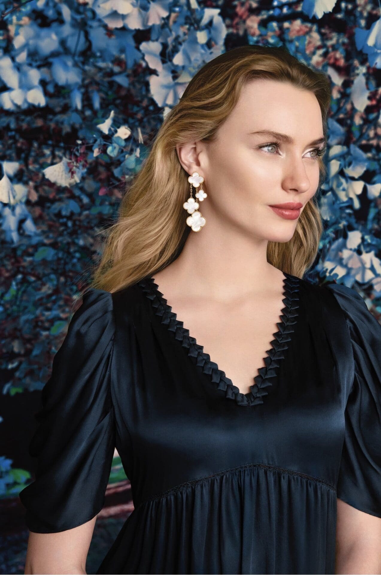 The Magic Alhambra transformable long necklaces are at the core of this new expression. True to the aesthetic introduced in 2006, they feature an asymmetric dance of motifs in various sizes, producing a sense of movement and visual rhythm. For the first time, these long necklaces can be transformed into shorter versions or worn as bracelets, achieved through an elegant detachable element discreetly integrated into the chain. The result is a piece that adapts effortlessly to different styles and occasions while maintaining its sculptural harmony.