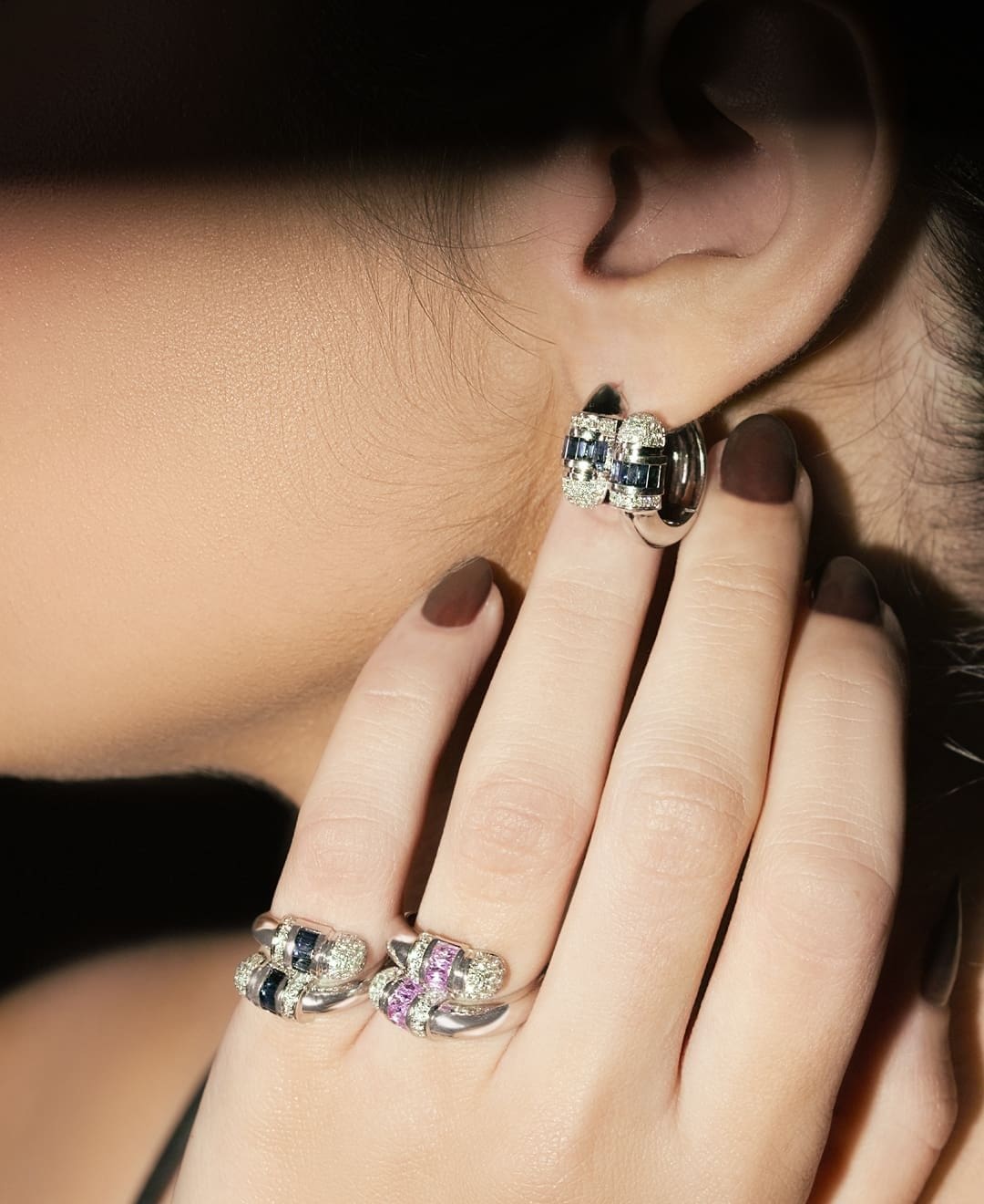 Each piece in the collection evokes the intimacy of something rediscovered, reinterpreted, and made new. Sculptural silhouettes nod to their vintage muse, while refined proportions and gemstone precision lend a contemporary edge. The craftsmanship is deliberate yet fluid, emphasizing movement, comfort, and wearability. Every jewel has been designed to transition seamlessly from everyday wear to elegant soirées — an effortless dialogue between past and present.