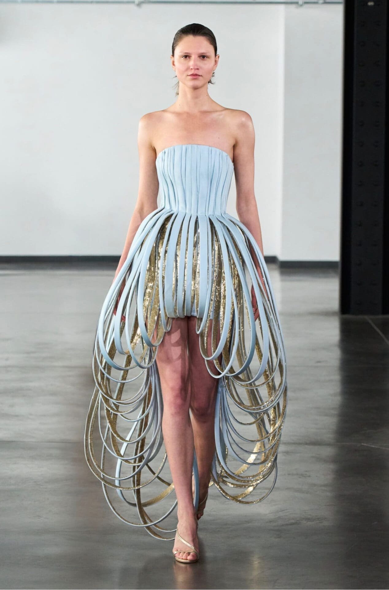 Sound becomes an extension of couture through a collaboration with Persian composer Shora Karimi, who created an original score for the presentation. Inspired by verses from Rumi’s Mathnawi, the music deepens the emotional register of the collection. Real instruments and live vocals transform the show into a fully immersive sensory experience.