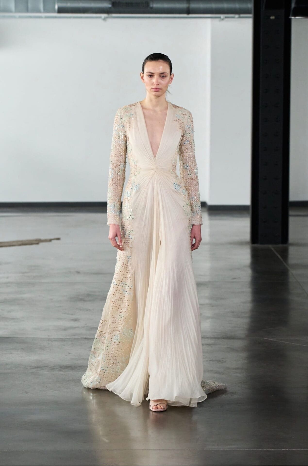 Movement defines the soul of the collection, with garments designed to breathe and evolve with the body. Silhouettes elongate, dissolve, and softly reassemble, creating a sense of motion that feels almost meditative. Couture here is not static or ceremonial, but alive, inviting the wearer into a slower, more contemplative rhythm.