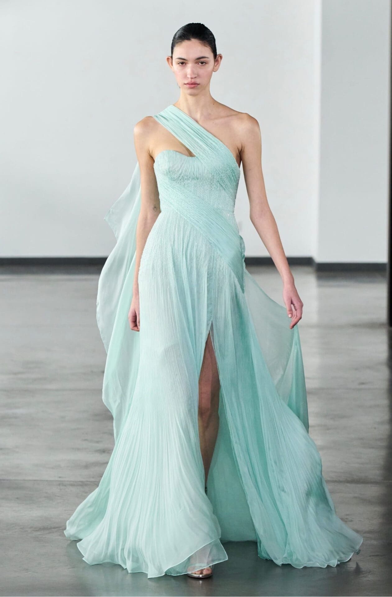 With Fragments in Harmony, Rami Al Ali offers a couture collection that embraces contrast as a path to unity. Repair becomes creation, and softness becomes strength. It is a quietly powerful statement on resilience and elegance, rendered through light, movement and a deeply poetic understanding of modern femininity.