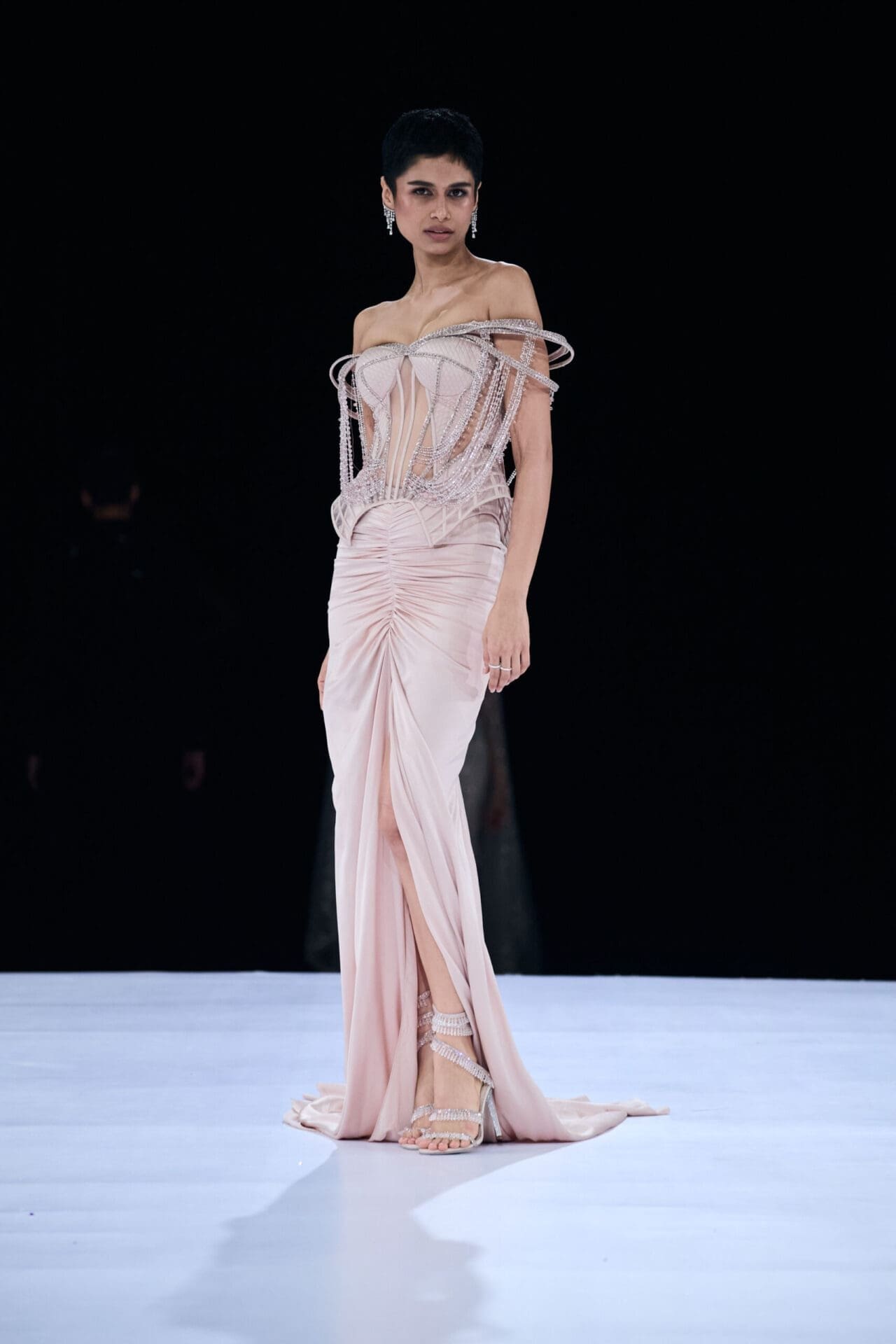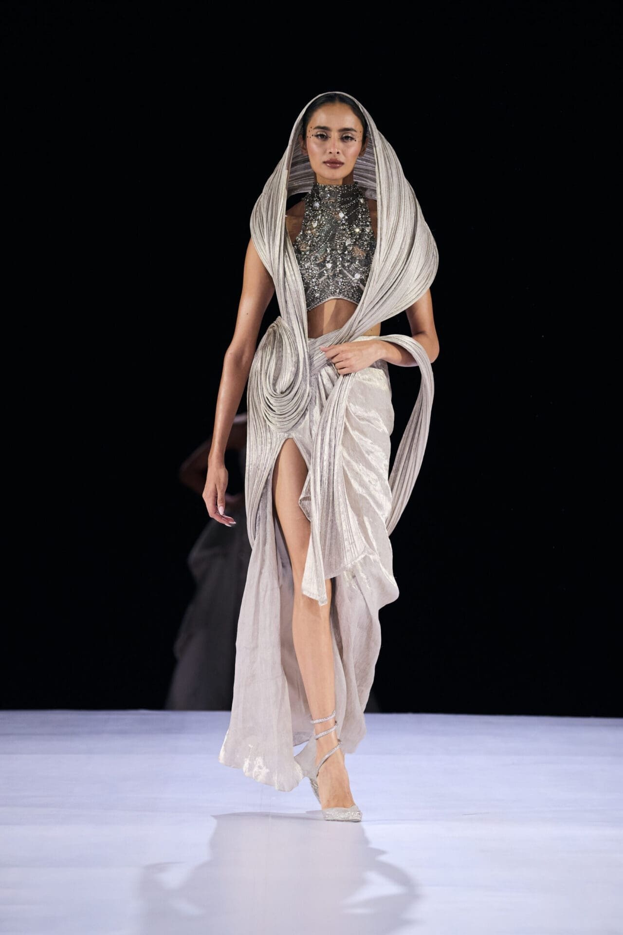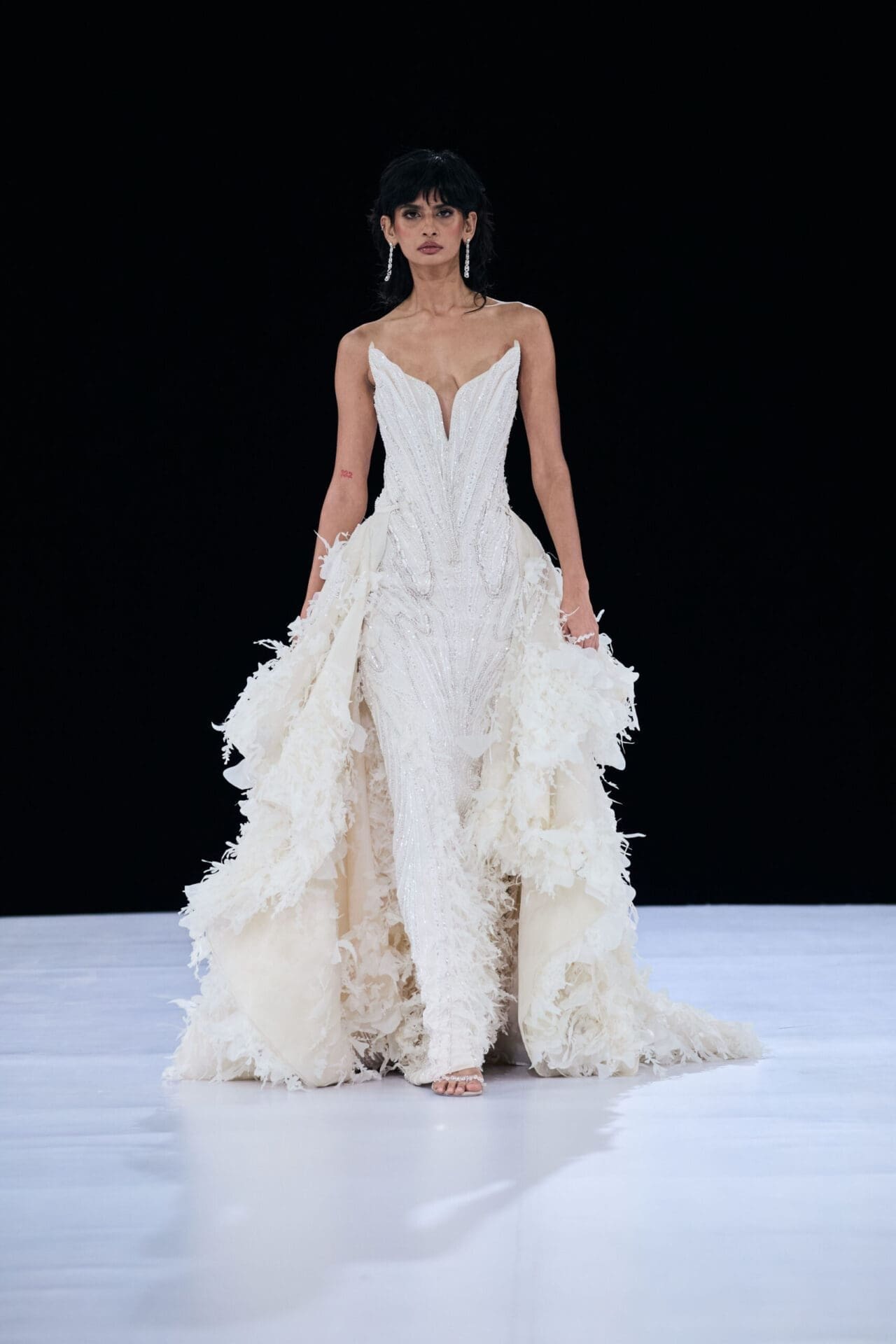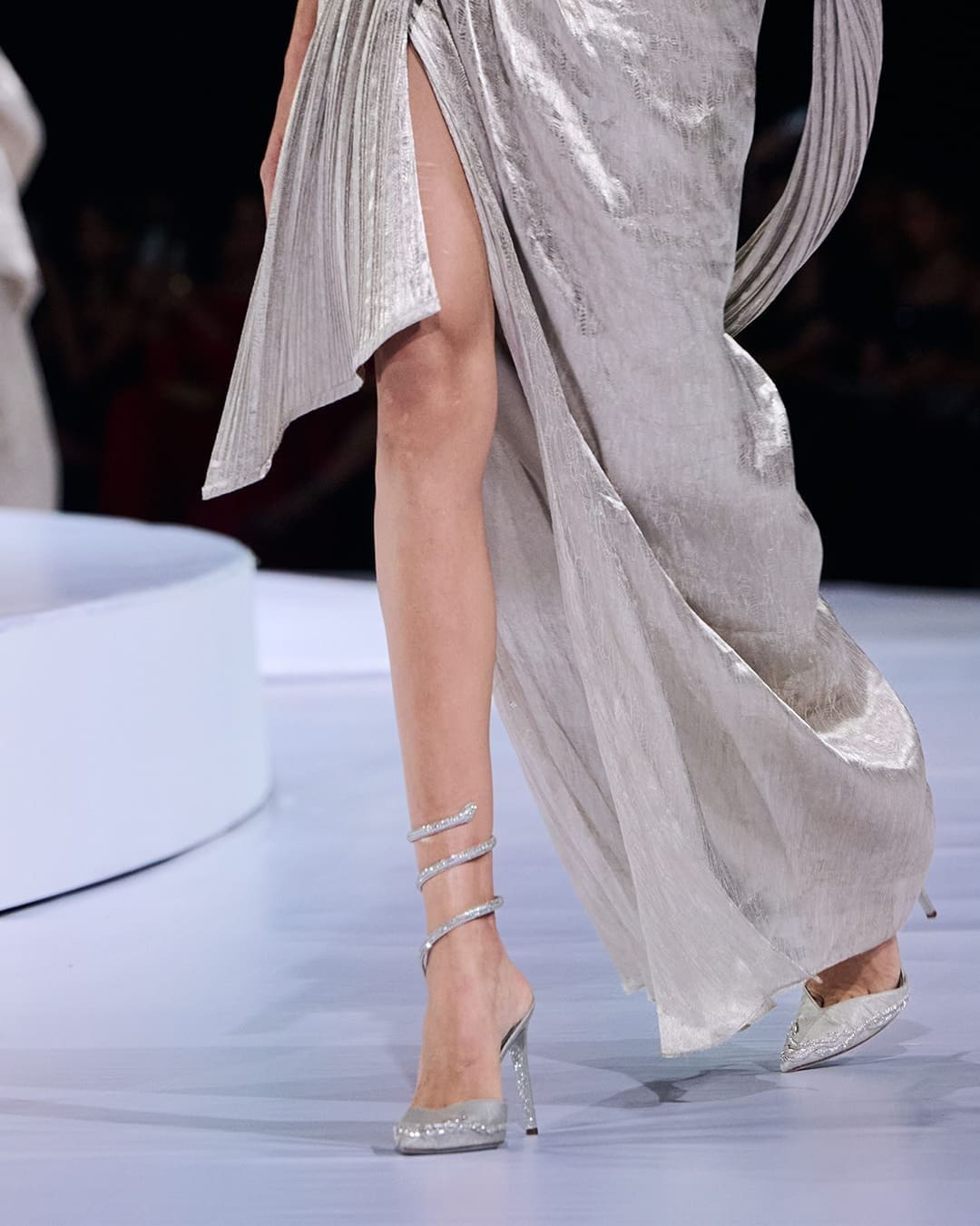 With a legacy built on over eight decades of fine Italian shoemaking, Rene Caovilla has long been synonymous with timeless glamour and meticulous savoir-faire. For this collaboration, the maison brought its distinctive codes of luxury to the forefront while seamlessly merging with Gupta’s sculptural, avant-garde sensibilities. The result was a bespoke footwear collection that elevated the designer’s bridal couture into an even more mesmerizing realm.