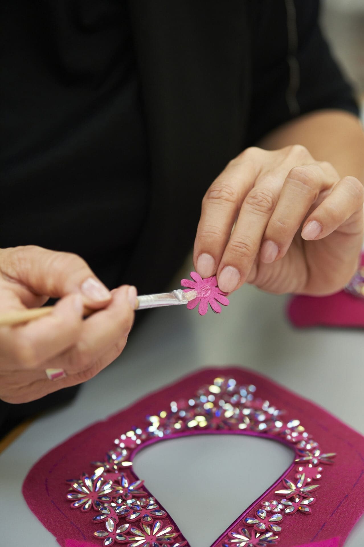 Among the five standout designs, two creations are nothing short of artistic feats. The first, a sheer tulle boot embroidered with more than 1,400 delicate flowers and butterflies, required approximately 120 hours of meticulous handwork. The second—a 105mm heeled ankle boot—features over 8,000 glistening crystals set into fuchsia tulle, an audacious play on transparency and sparkle that evokes both delicacy and daring. Together, they represent the apogee of the Maison’s technical virtuosity and daring creativity.
