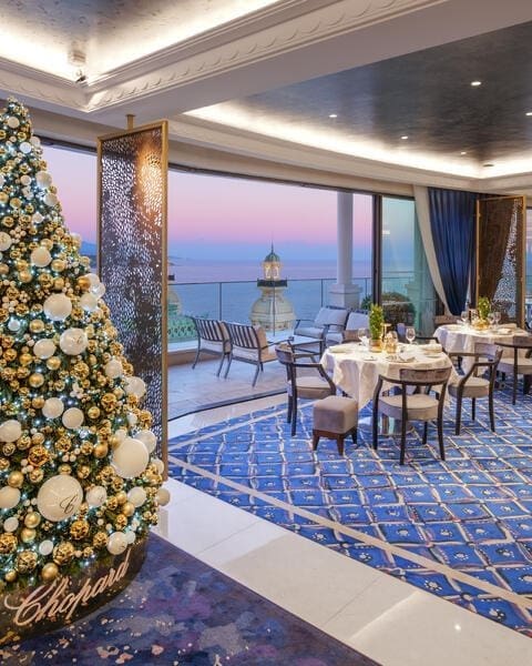 Arriving at the hotel feels like stepping into a living postcard. Gilded halls glow with candlelight, the scent of winter herbs drifts through open terraces, and every corner carries the promise of a celebration crafted with grace. Christmas Eve at Le Grill unfolds on a terrace suspended between sea and sky, where refined Riviera flavours meet the warmth of tradition. Under gentle candlelight and the soft rumble of ocean waves, guests enjoy a festive menu that feels intimate yet beautifully theatrical.