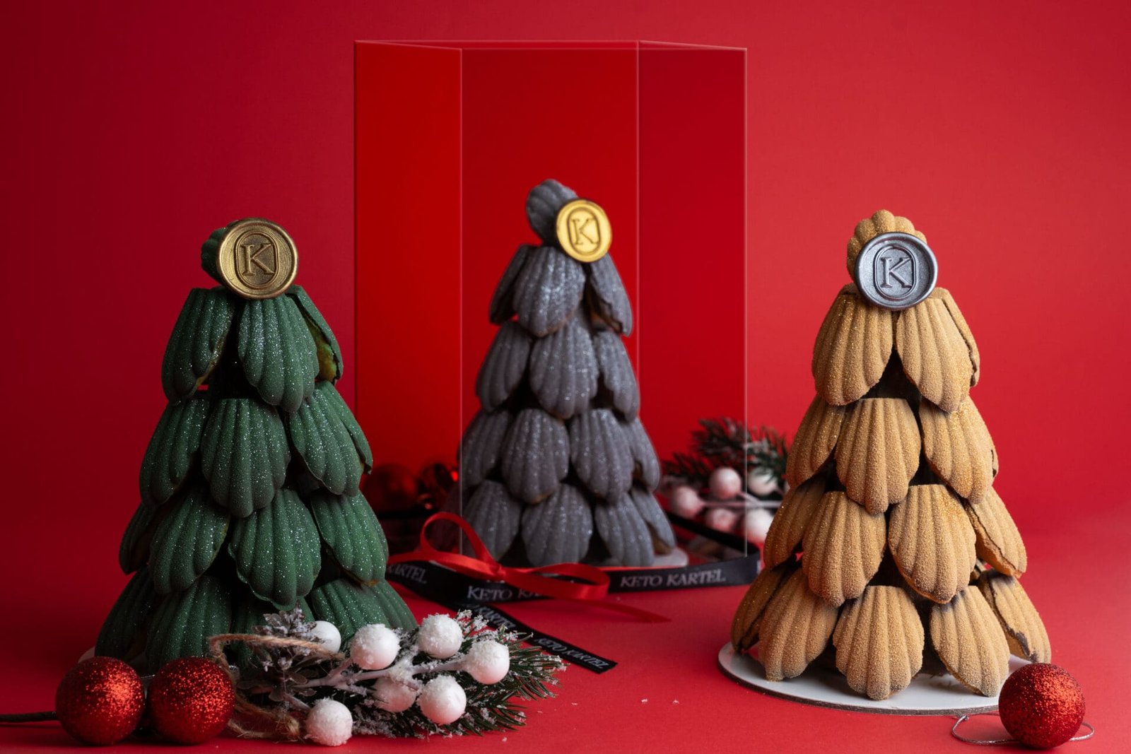 The Madeleine Christmas Tree pays homage to classic French patisserie, yet with a modern, guilt-free edge. Each tree is dipped in silky dark chocolate and brushed with a shimmering glow, available in Christmas Green, Shimmering Silver, and Glistening Gold. It’s playful yet poised, designed for gatherings where sharing becomes part of the season’s ritual.