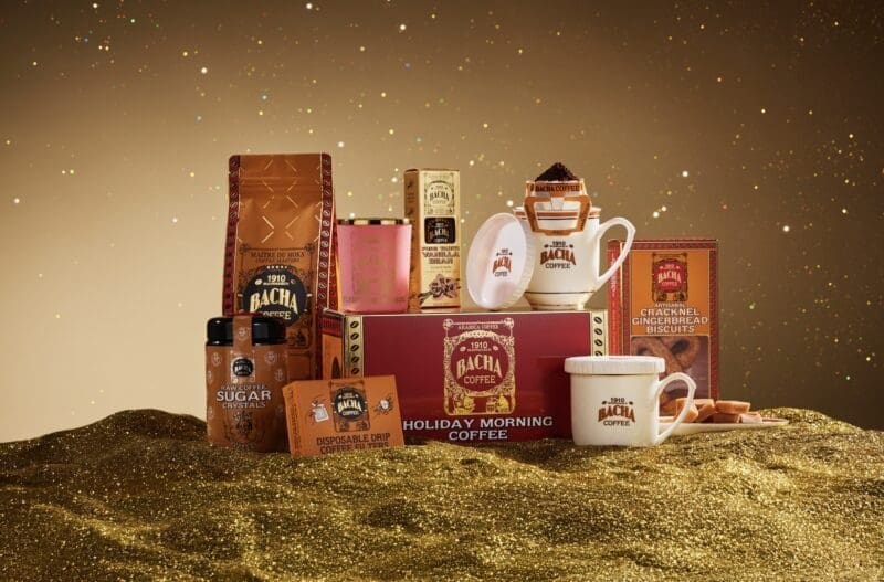 Alongside the brand’s newest creation, Bacha Coffee reintroduces its beloved stocking treasures. Jewel-toned boxes reveal chocolate-covered coffee beans gleaming with festive charm, while petite Tahiti Vanilla Bean Grinders offer an aromatic flourish that elevates both coffee and dessert. There are jars of Arabica-infused coffee jelly to brighten winter mornings and pocket-sized coffee bag selections that transform simple moments into warm, fragrant rituals. Each piece is thoughtfully designed, making gifting effortless and meaningful.