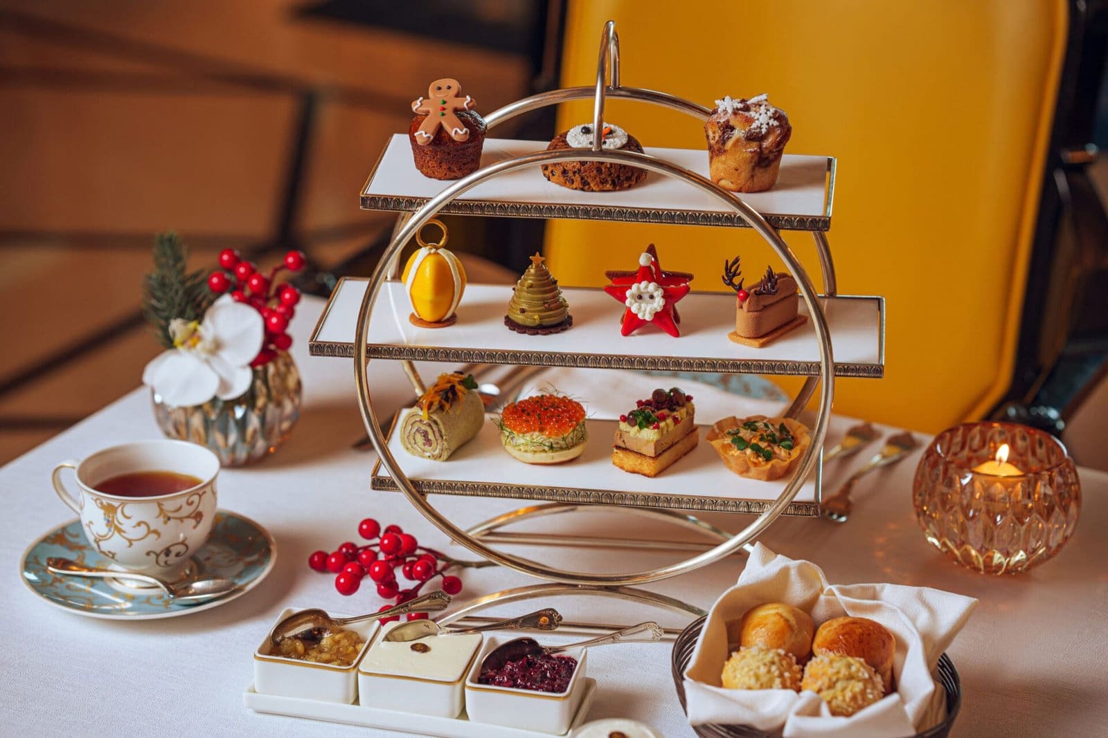Running from December 5, 2024, to January 8, 2025, Shai Salon’s festive afternoon tea offers a blend of elegance and seasonal flavors. Priced at AED 300 per person, or AED 450 with champagne, the experience promises a serene retreat from the holiday hustle. Guests can enjoy a curated selection of freshly baked treats infused with winter spices, such as Christmas Spiced Cake with candied ginger and Almond Cacao Cookies.