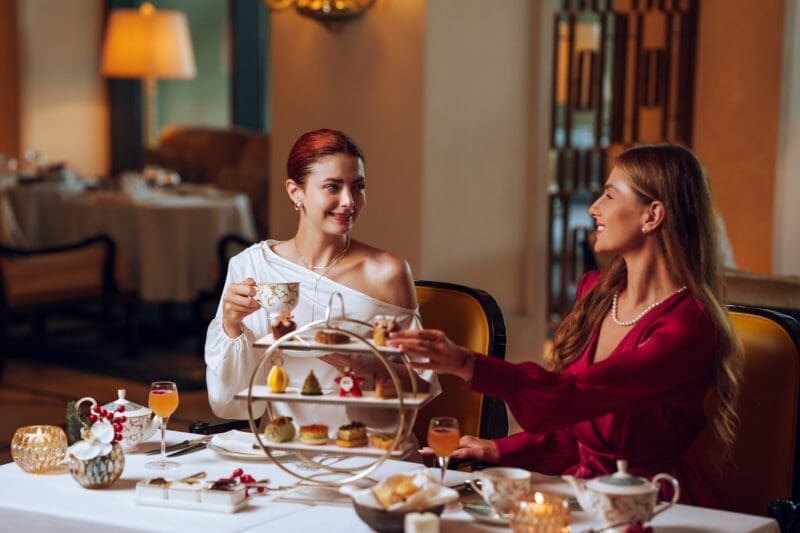 Running from December 5, 2024, to January 8, 2025, Shai Salon’s festive afternoon tea offers a blend of elegance and seasonal flavors. Priced at AED 300 per person, or AED 450 with champagne, the experience promises a serene retreat from the holiday hustle. Guests can enjoy a curated selection of freshly baked treats infused with winter spices, such as Christmas Spiced Cake with candied ginger and Almond Cacao Cookies.