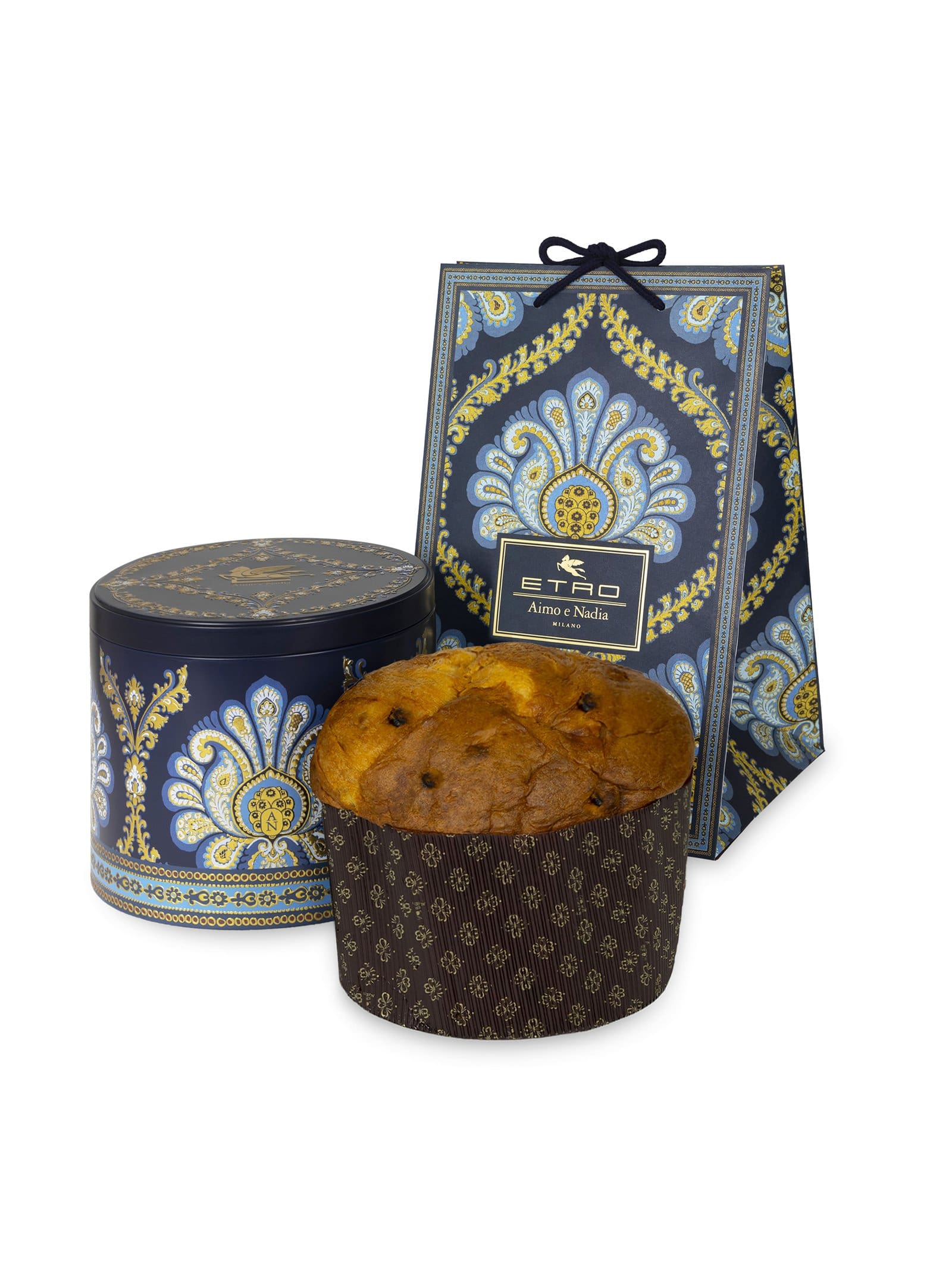 True to Etro’s signature aesthetic, both delicacies are presented in stunning satin-finished metal boxes. The Pandoro box features magenta and pink hues accented with gold, while the Panettone box dazzles with a blue and gold palette. These sophisticated designs make them the perfect gift for the discerning gourmand or an elegant addition to festive celebrations.