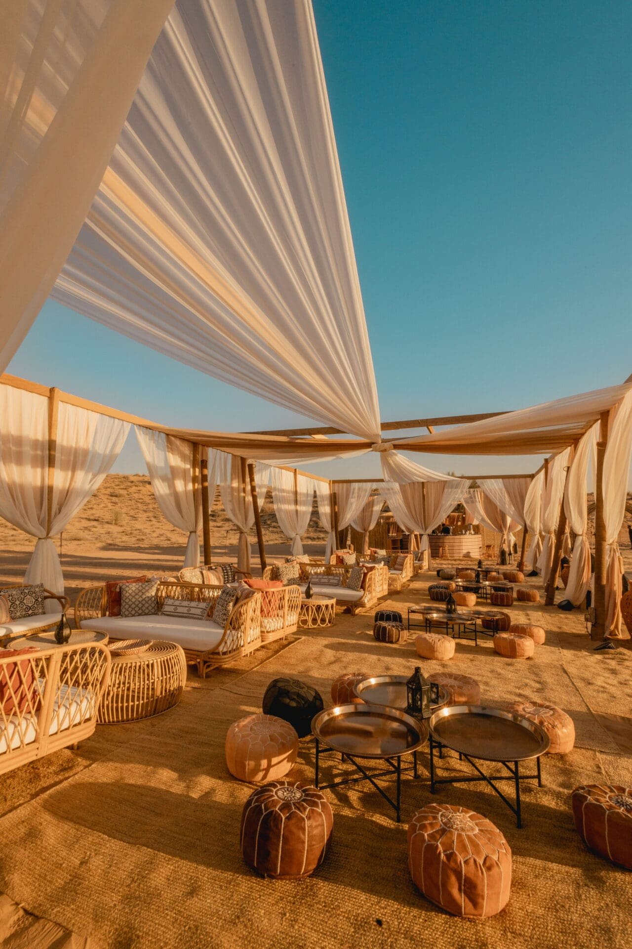 As the evening deepens, classic Ramadan sweets including Mohalabiah Pudding and artisanal Moroccan pâtisserie are served gradually, encouraging unhurried conversation. The experience mirrors the same principles of restraint and balance found in the desert setting. Whether under open skies or on calm waters, the focus remains on presence and shared moments.