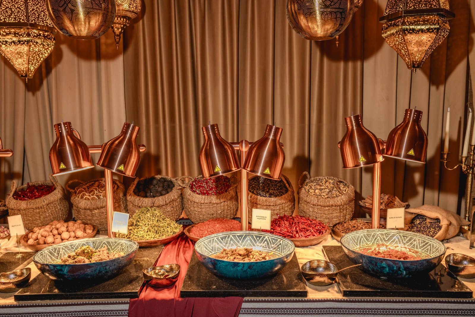 The Iftar itself is designed around sharing rather than excess. Red Lentil Soup, traditional mezzes and fragrant Chicken Biryani sit alongside slow-cooked stews such as Slow-Braised Beef and Prune Tajine and Chicken, Olive and Preserved Lemon Tajine. Live stations present Lamb Madfoon, complemented by fresh salads and warm breads, before timeless Ramadan desserts including Kunafa, Umm Ali, artisanal Moroccan pâtisserie and premium dates conclude the meal with softness.
