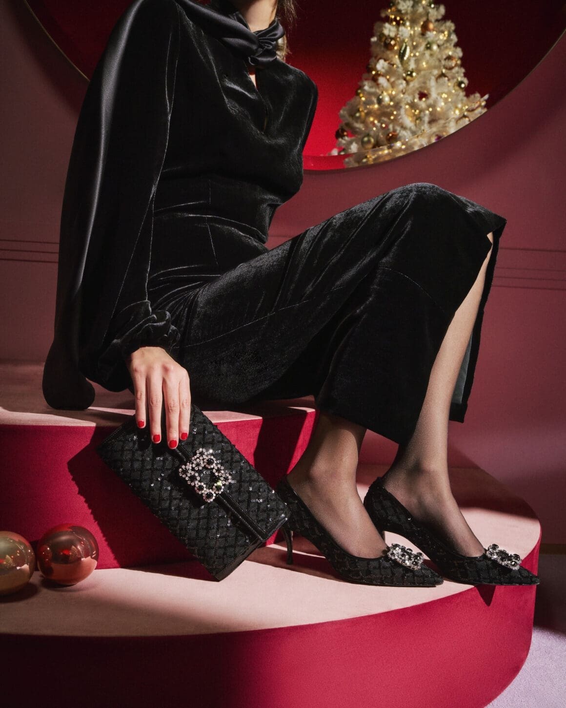 - Efflorescence Mules: Featuring the Maison’s signature crystal flower-encrusted buckle, these mules add a touch of sparkle to any New Year’s look.
