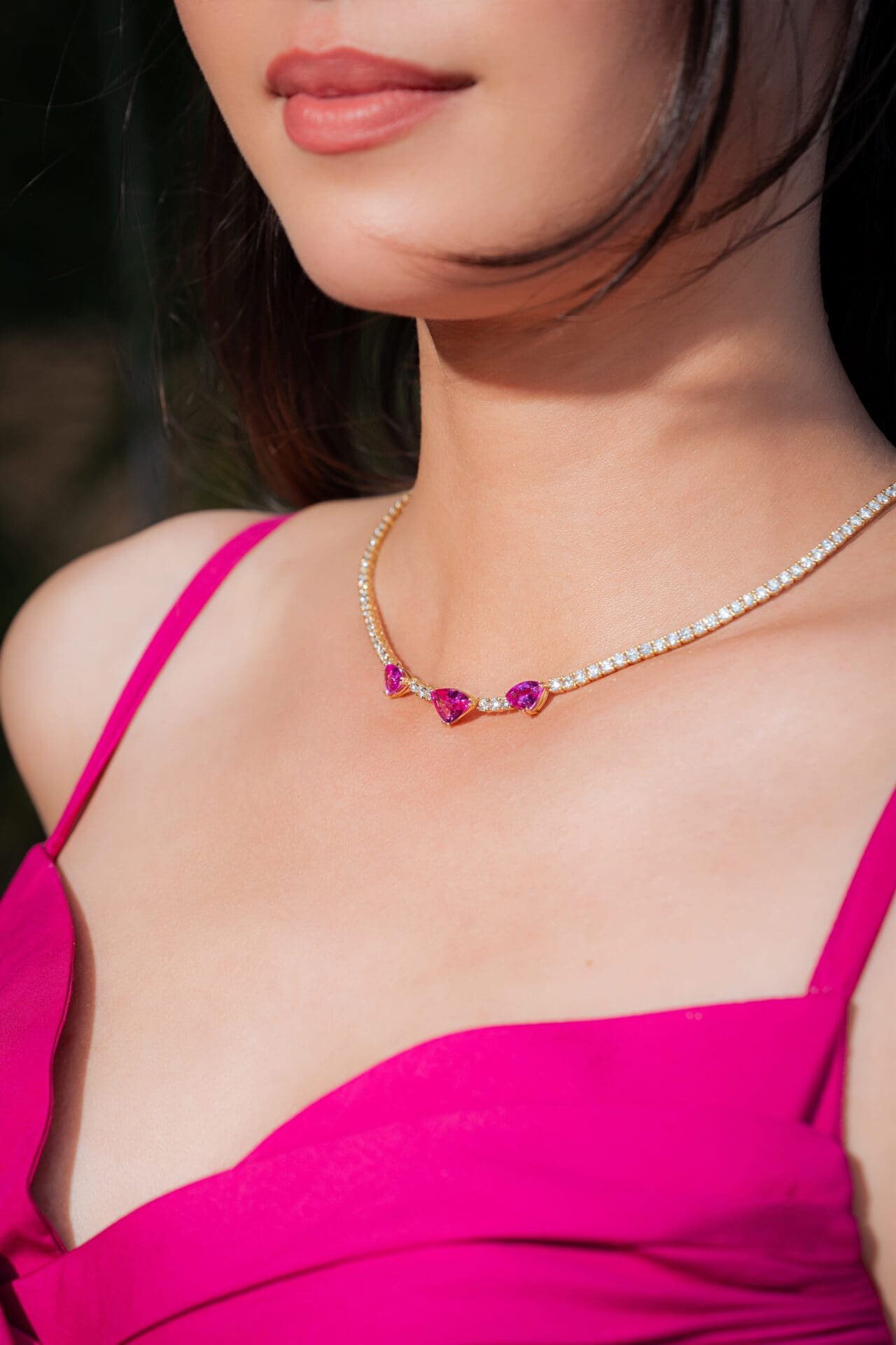 Colour takes centre stage, led by pink sapphires that bring a modern energy to classical forms. In a refined reimagining of the diamond line necklace, vivid sapphires interrupt familiar brilliance, creating a rhythm that feels both timeless and expressive. It is a statement of confidence, where craftsmanship elevates colour into quiet luxury.