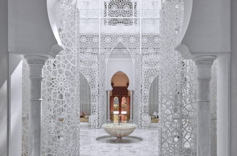 Stepping into the hammam at Royal Mansour feels like entering another world. The purity of pearly white marble glimmers softly under natural light, while the gentle murmur of water fountains sets a meditative rhythm. It is a sanctuary of calm, where centuries-old rituals are reimagined with modern sensibility, creating an atmosphere that feels at once timeless and indulgent.