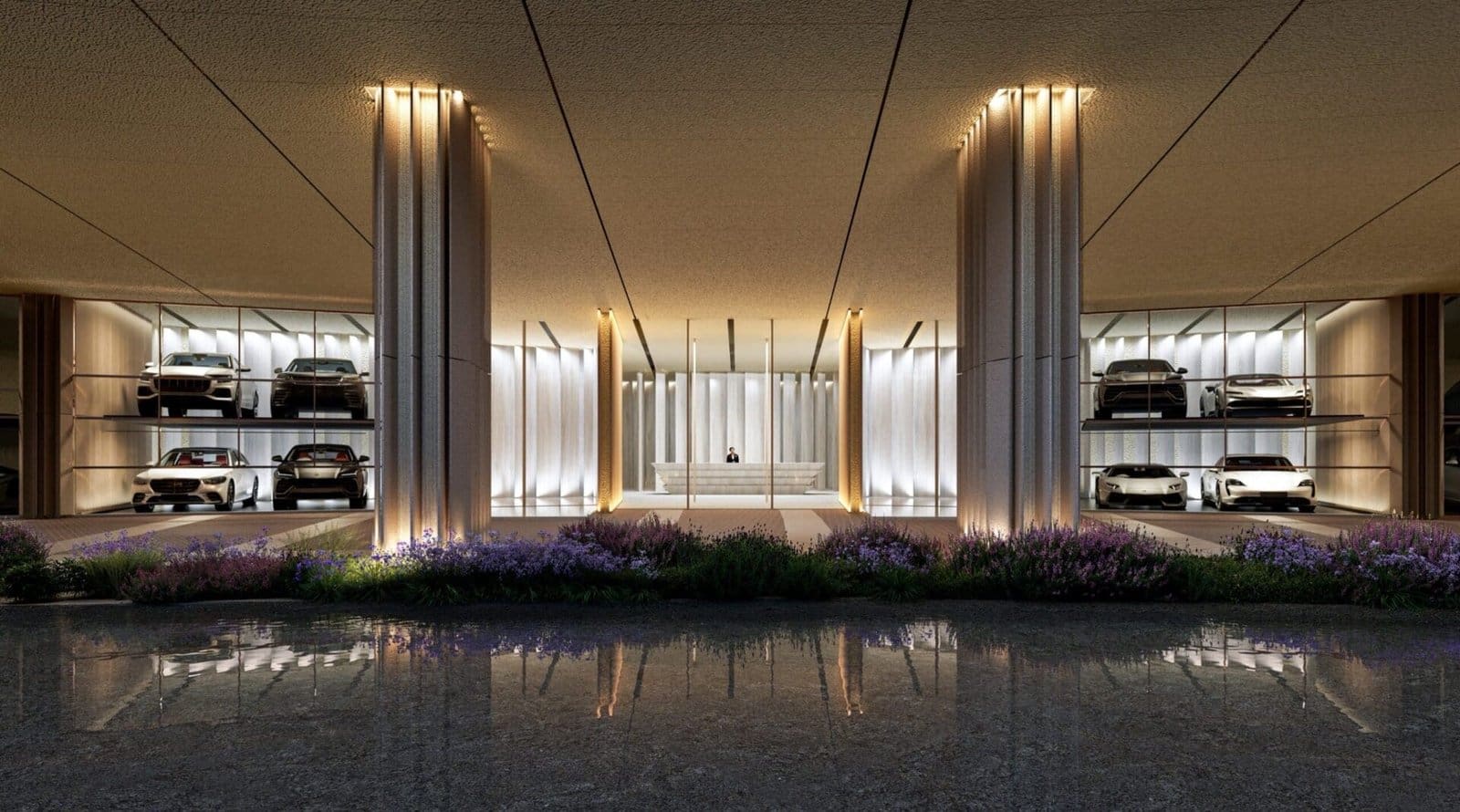 Residents enjoy over 65,000 sq ft of dedicated amenity spaces designed for wellness, leisure, and entertainment. Highlights include The Oasis arrival experience, a temperate-controlled luxury car stacker, The Shore and The Valley active living spaces, The Cave wellness cocoon, and The Mountain for private meetings. Complementing these are private treatment rooms, reformer Pilates studios, a podcast room, and boxing facilities, alongside filtered air and water systems integrated throughout.