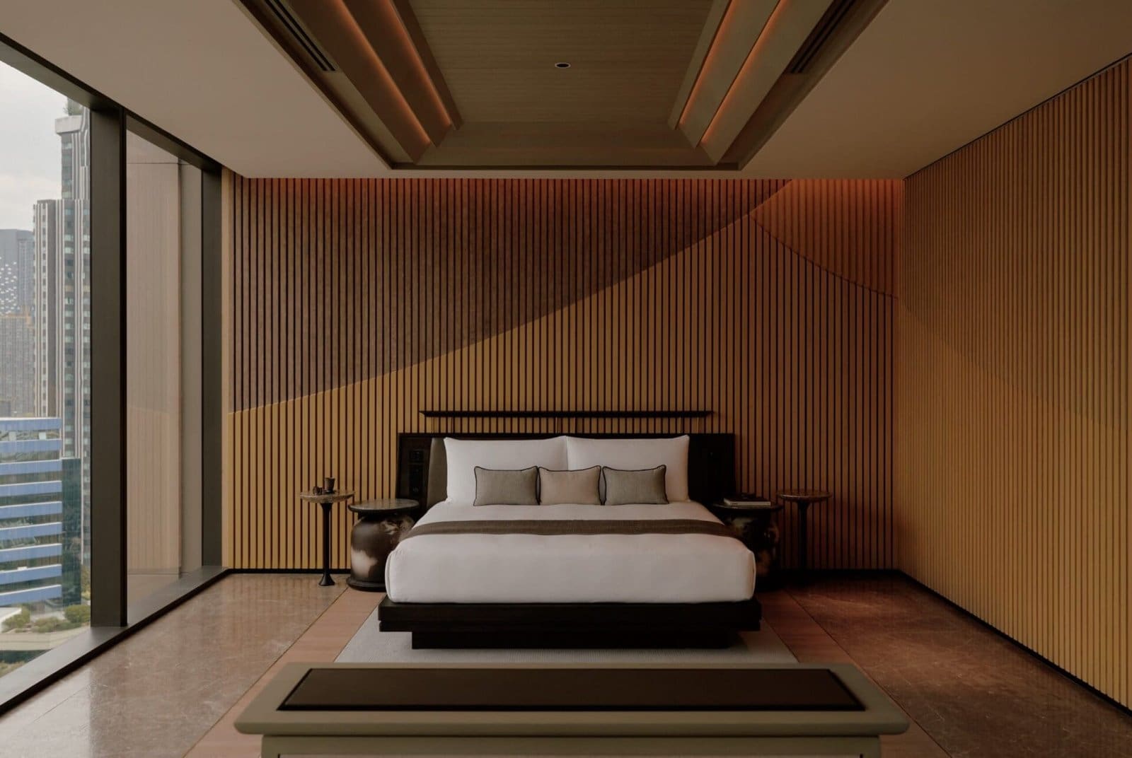 Beyond the Aman Suite, the hotel’s 51 additional suites range from 94 square metres upwards, providing a quieter, yet equally elegant sanctuary. Each suite embraces floor-to-ceiling windows, pivoting panel doors, oversized bathrooms, daybeds, and dedicated workspaces, ensuring that every guest finds a personal retreat that balances comfort with refinement.