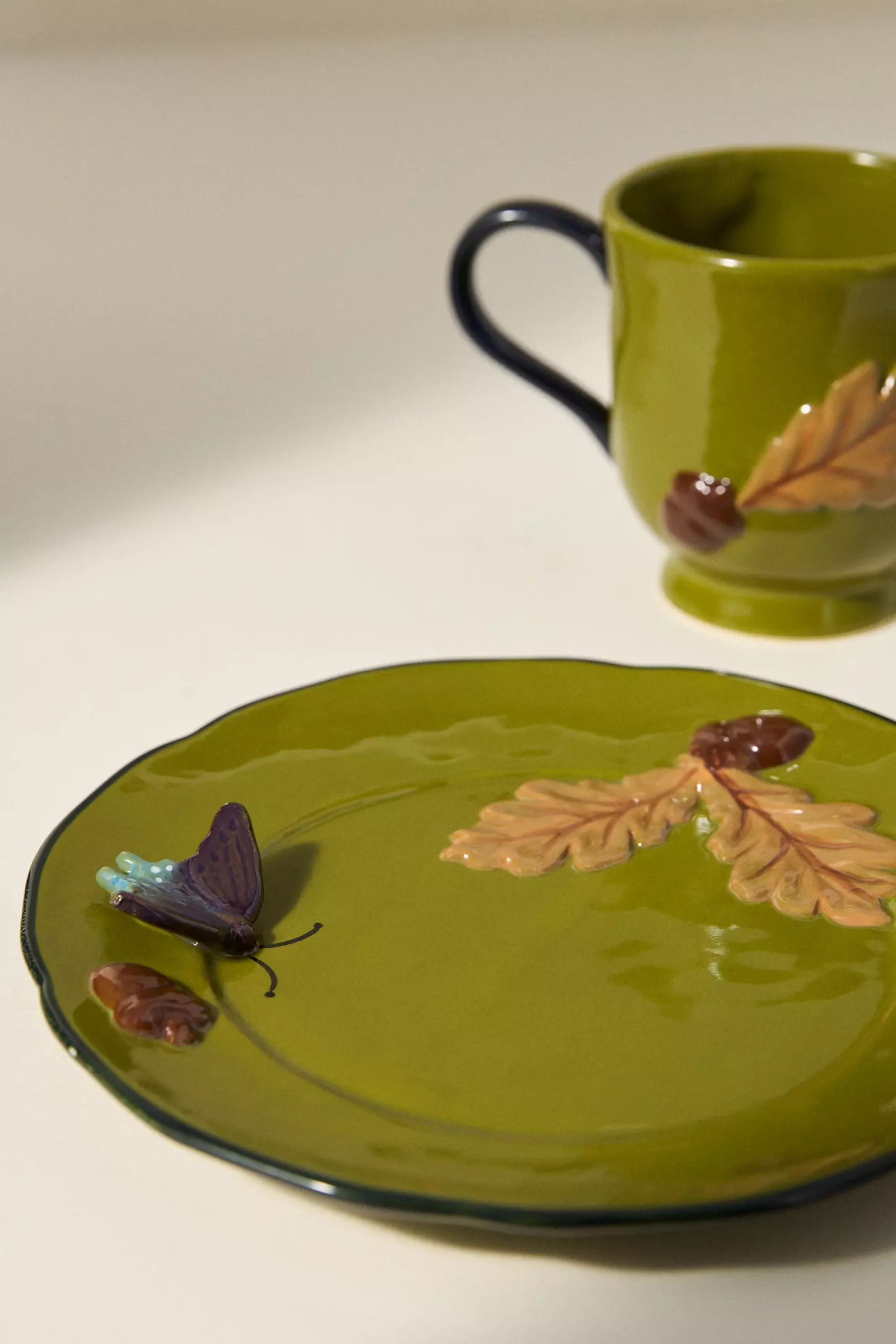 The collection celebrates rustic details and handcrafted artistry, with plates and mugs adorned in garden-inspired motifs—from pears and butterflies to delicate florals—designed to add warmth and character to everyday dining. Scalloped cake stands invite homemade bakes to take centre stage, transforming casual gatherings into moments of celebration.