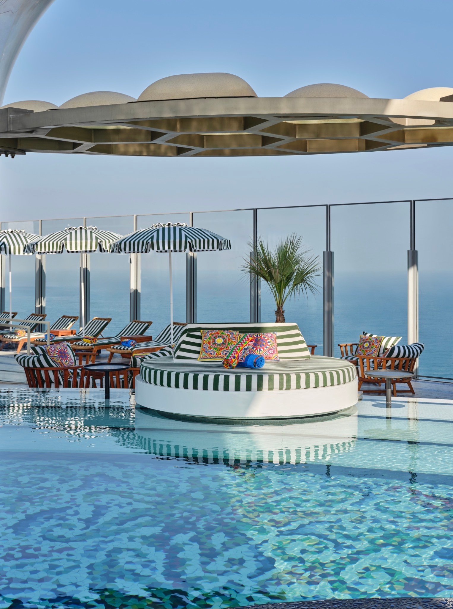 The transformation celebrates Dolce&Gabbana’s devotion to craftsmanship and its deep connection to Italian culture. Cloud 22’s luxurious poolside landscape now features vivid patterns, folkloric motifs, and intricate details reminiscent of Sicily’s heritage, creating an atmosphere where glamour meets tradition. Every surface tells a story of artistry and warmth, from sun loungers draped in the Carretto’s kaleidoscopic hues to cabanas that capture the essence of Italian summer living.