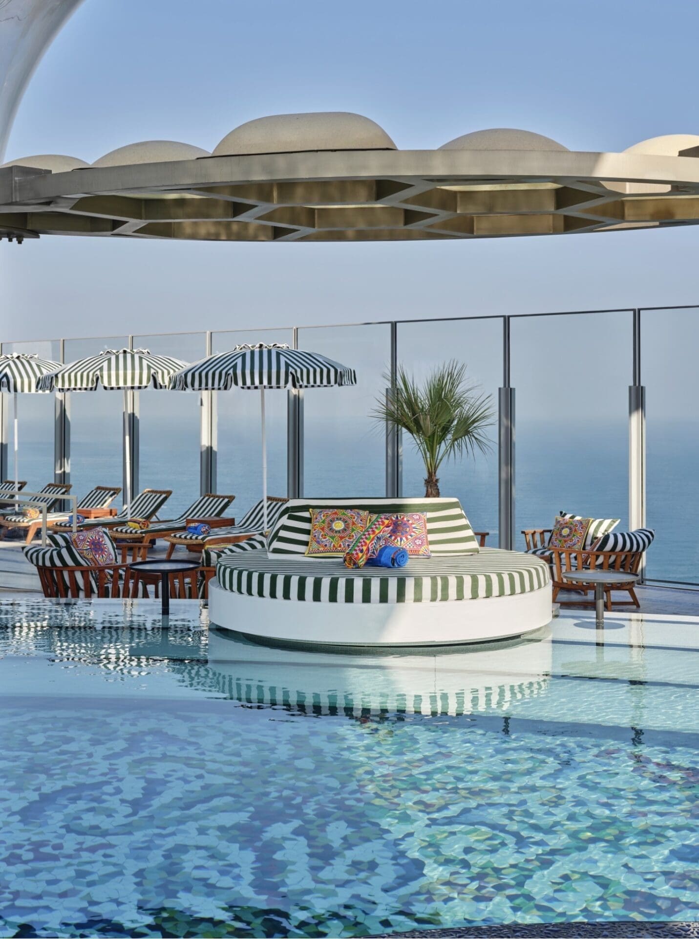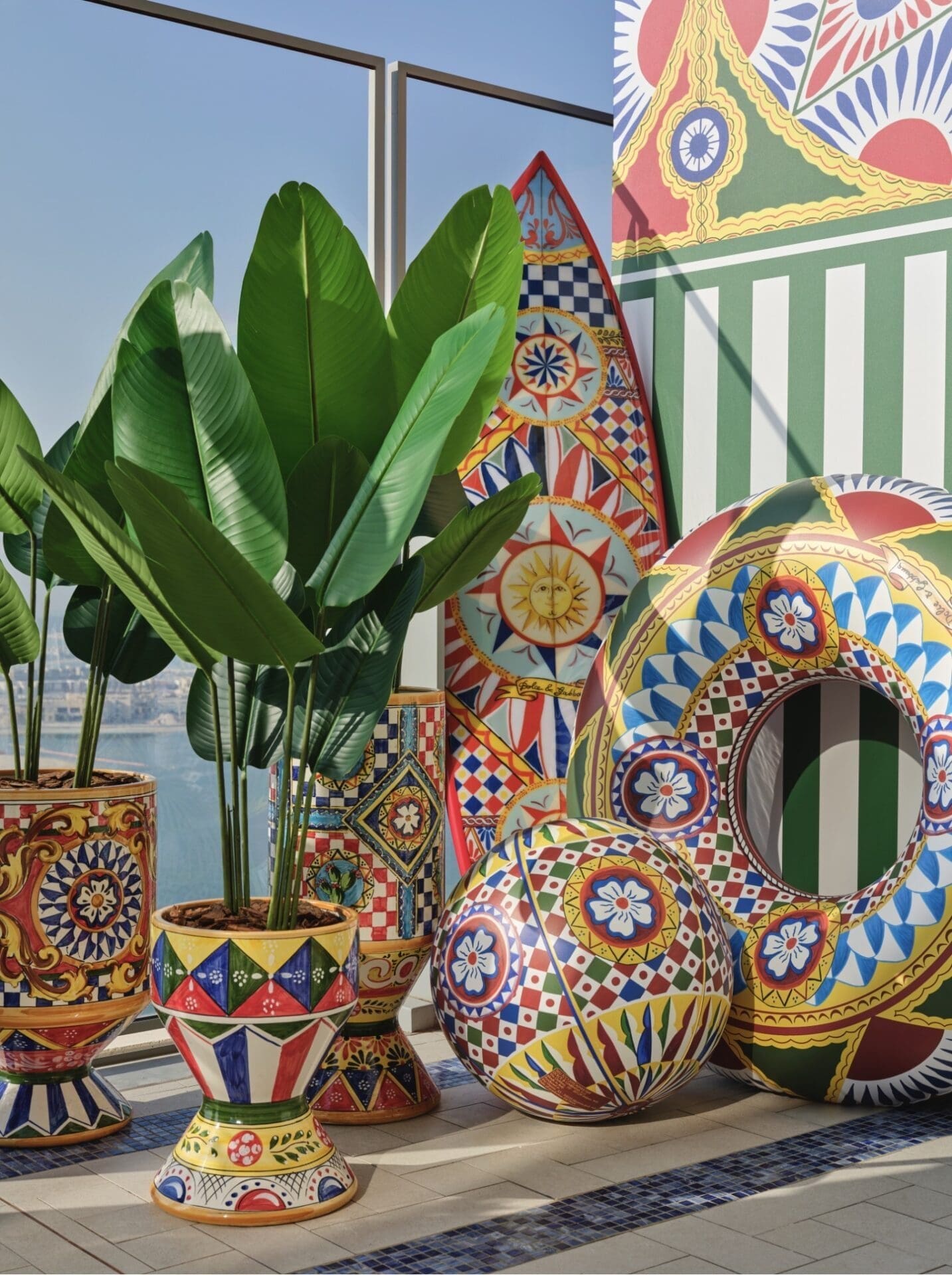 The transformation celebrates Dolce&Gabbana’s devotion to craftsmanship and its deep connection to Italian culture. Cloud 22’s luxurious poolside landscape now features vivid patterns, folkloric motifs, and intricate details reminiscent of Sicily’s heritage, creating an atmosphere where glamour meets tradition. Every surface tells a story of artistry and warmth, from sun loungers draped in the Carretto’s kaleidoscopic hues to cabanas that capture the essence of Italian summer living.