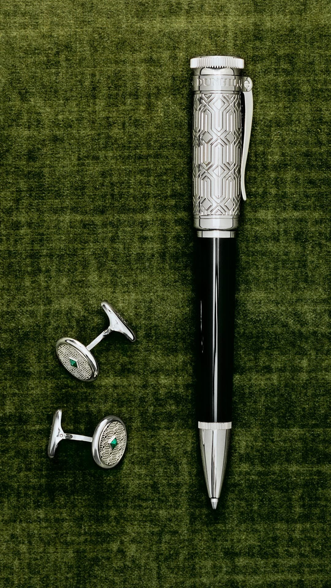 For 2026, dunhill unveils the Varnacular capsule collection, an exclusive offering created for the Middle East and shaped by a spirit of refined generosity. Drawing from archival references and arabesque motifs, the collection bridges British craftsmanship with a palette deeply attuned to regional symbolism. Green — long associated with life, renewal, and protection — anchors the narrative in tones of racing, malachite, and lacquered intensity, softened by accents of white and silver.