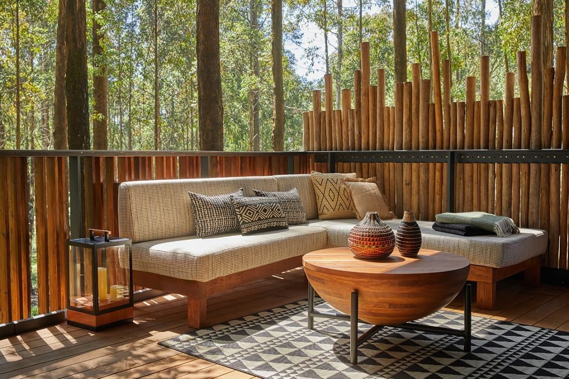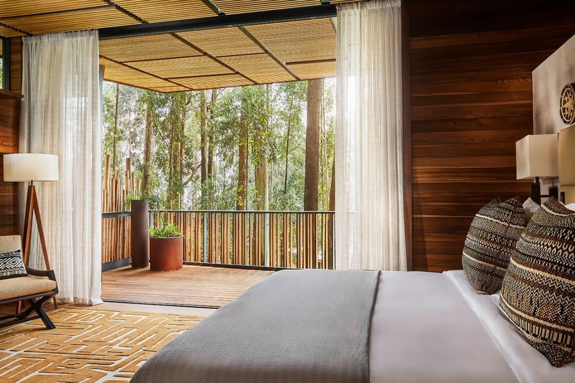 Beautifully designed private sanctuaries seamlessly blend with the location and offer an intimate collection of 21 jungle-chic havens. Featuring 10 Forest King Lodges, four Two-Bedroom Forest Lodges, five Virunga Suites, one Ingagi and Silverback Suite, each space is designed to frame nature, surrounded by Eucalyptus trees and strategically positioned on stilts. Private decks and in-room fireplaces provide guests the opportunity to live amongst the endless landscape, inviting the outside in, and allowing for a truly unforgettable African experience. Suites offer spacious living and dining areas, as well as a true natural experience with outdoor bathtubs high amongst the trees, offering ultimate privacy. Each lodge design is modern with an African contemporary feel, showcasing the hues of the surrounding vistas, and colours of the earth and natural, local volcanic rock, with touches of black and white Rwandan imigongo patterns.