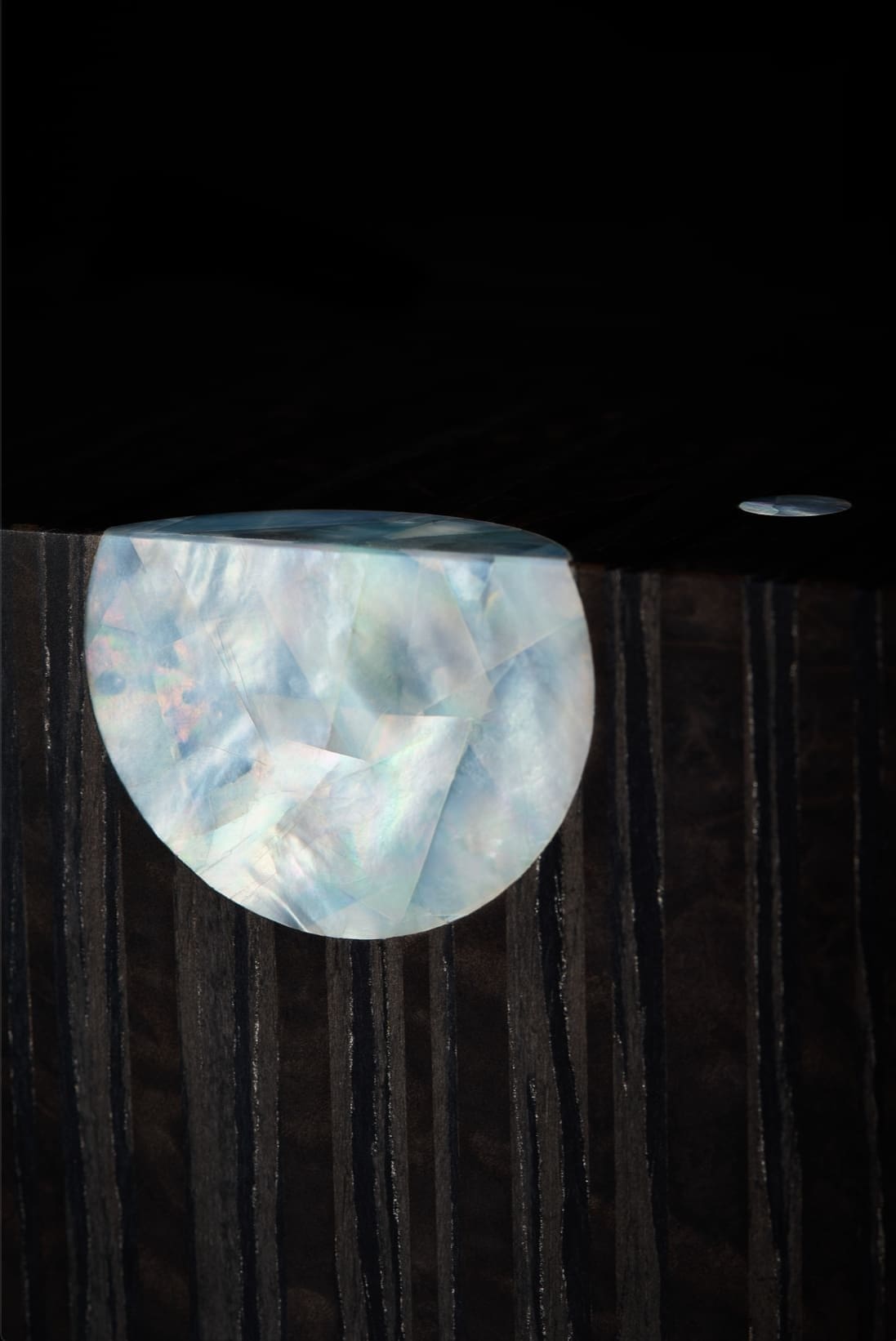 At the heart of Forget Time is a silent tension between stillness and motion. The oscillating discs of mother-of-pearl, layered like shifting tectonic plates, act as visual metaphors for the passage of time—not in hours and minutes, but in moments and memories. This artistic mechanism doesn’t just tell time; it reflects on the impossibility of grasping it. In this way, the object resists the traditional function of a clock, transforming instead into an emotional compass, pointing not to the now, but to the infinite.