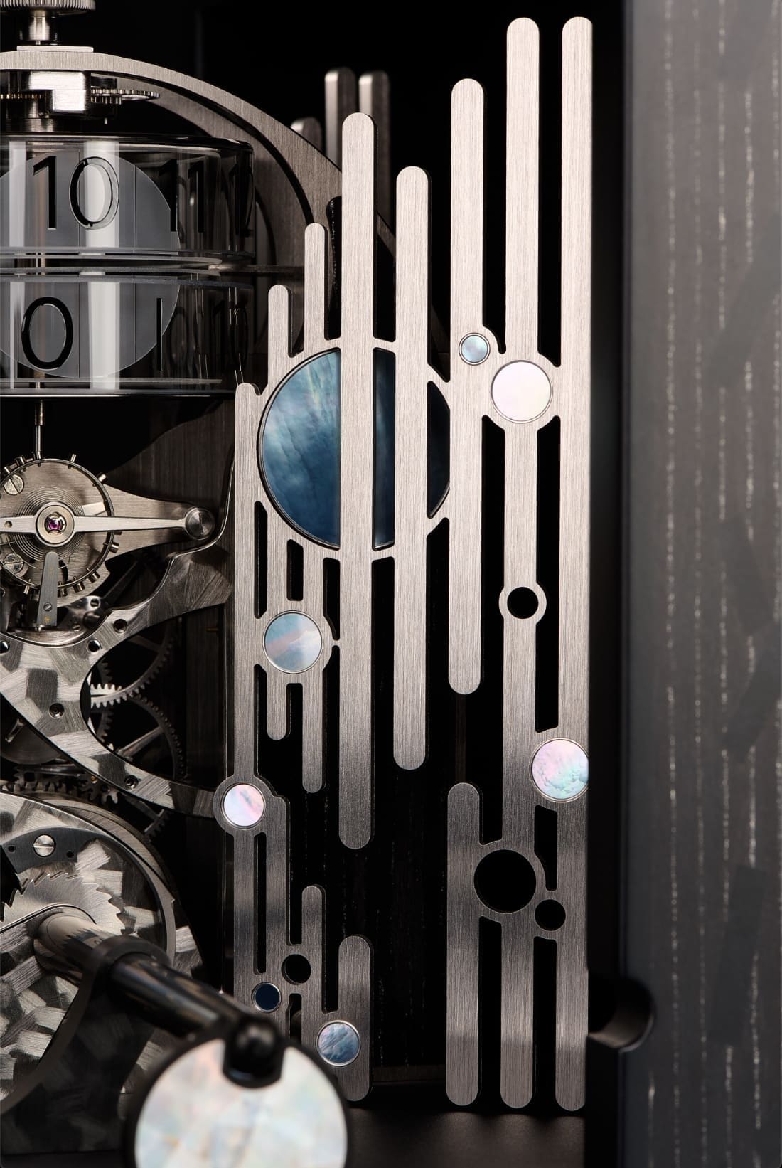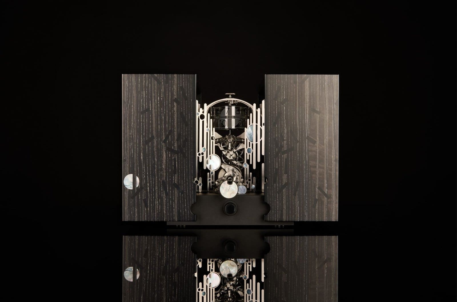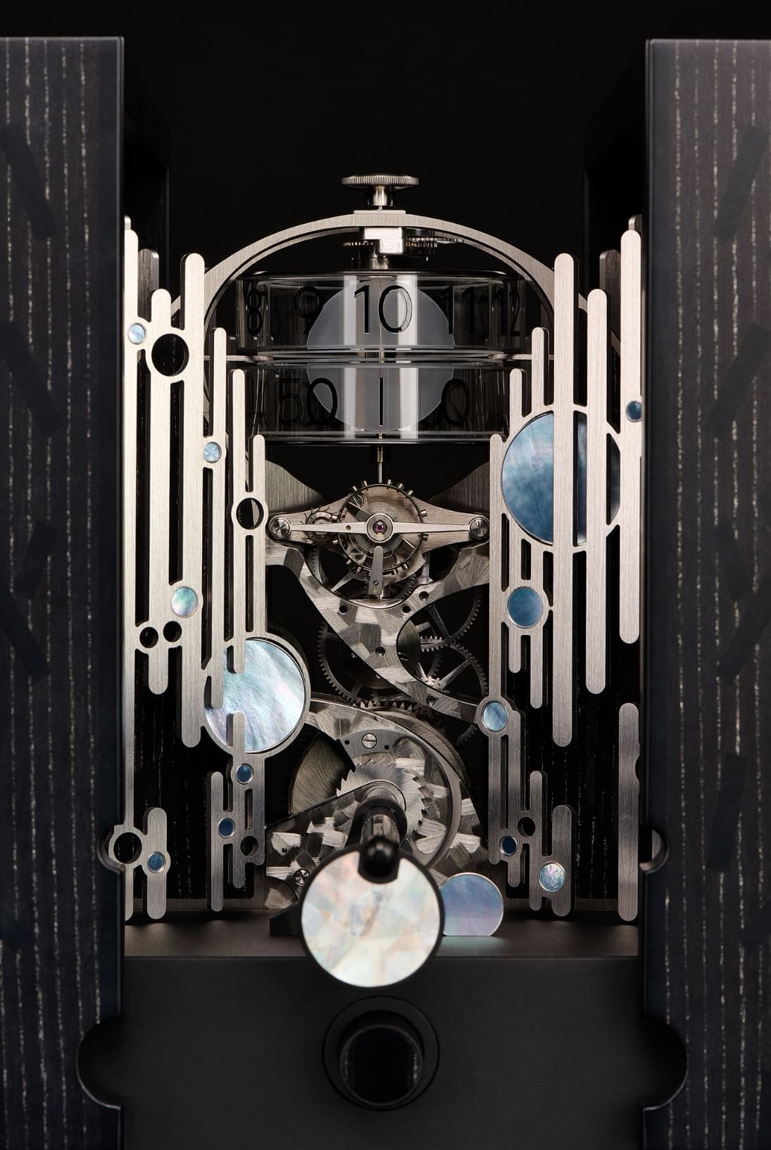 This piece continues Flageollet’s long-standing passion for horological objects that go beyond wristwatches. “Clocks offer a much vaster space,” he explains, “They allow for a freedom of expression—both mechanical and artistic—that’s harder to achieve on the wrist.” Flageollet’s past work includes the celebrated Stellar Clock, and Forget Time builds upon this legacy of pushing horology into the realm of high art.