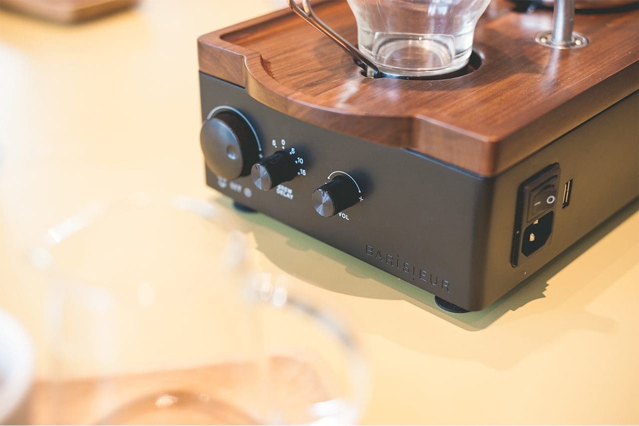 The Barisieur is inspired by a combination of the modern ritual of filter coffee with the visual aesthetics of a vinyl record player. Form follows function with all aspects of this design. The scientific borosilicate glassware sits on a beautiful walnut or rubber-wood timber tray. The tray effortlessly lifts off the mid-century-styled black or white base to aid transportation of accessories. The mix of Scandinavian and timeless design makes the Barisieur feel at home whether it is placed in the kitchen, living room or bedroom.