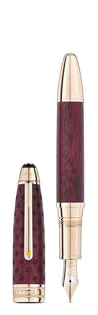 The cap and barrel of the Meisterstück Le Petit Prince Precious Resin Le Grand and Meisterstück Le Petit Prince Precious Resin Classique are made of a polished burgundy colour precious resin reminiscent of the rose, and enhanced with champagne-tone gold-coated fittings. Immortalized on the handcrafted 14K gold nib of the fountain pen, the Little Prince weeds his planet, representing the notion that true love comes from investing in and caring for people, just as the little prince cares for his rose and planet. Contrasting with the precious burgundy translucent lacquered barrel, the champagne-tone gold plated cap of the Meisterstück Le Petit Prince Doué Classique is etched with stars and the name of asteroid “B612”. The 18K bi-colour champagne-tone gold nib is decorated with a delicate drawing of the rose. The Meisterstück Le Petit Prince Solitaire Le Grand Edition is crafted from European hornbeam wood, stained in a wine burgundy colour. The wood cap is decorated with a milled star pattern featuring B612 on the backside of the cap. The clip of every edition is adorned with a lacquered golden colour star, a reference to the Little Prince’s invitation to the pilot to remember his laugh by simply looking at the stars above. The cap of each writing instrument is etched with the simple yet meaningful words the fox shares with the little prince: “On ne voit bien qu’avec le coeur.” (“One sees clearly only with the heart”). The fox’s life lesson is that what truly matters in life is what the heart and soul sees rather than the superficial not things we see with our eyes.