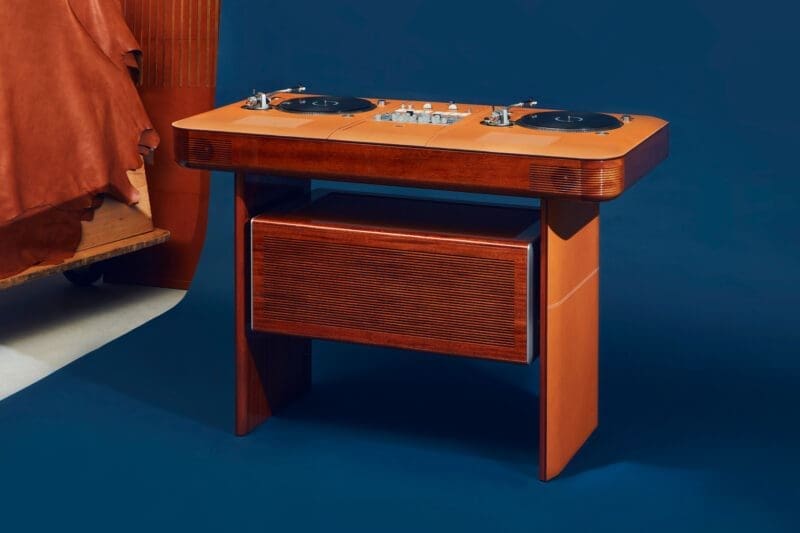 Even sound is touched by Hermès savoir-faire. Under its Ateliers Horizons banner, the house introduces audiophile-grade speakers and headphones clad in supple Pippa cowhide, marrying cutting-edge technology with saddler tradition. A lacquered mahogany DJ system and a whimsical Neon Cheval jukebox—with Murano glass and eight speakers—remind us that Hermès thrives where craft and imagination intersect.
