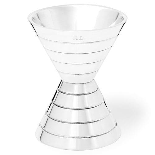 The cocktail shaker and cooler are made from polished silver-tone metal with Art Deco-inspired ridges that enhance grip, while the decanter, as well as the Martini, whisky and high-ball glasses, are made from lead infused crystal for a crisp, sparkling appearance.