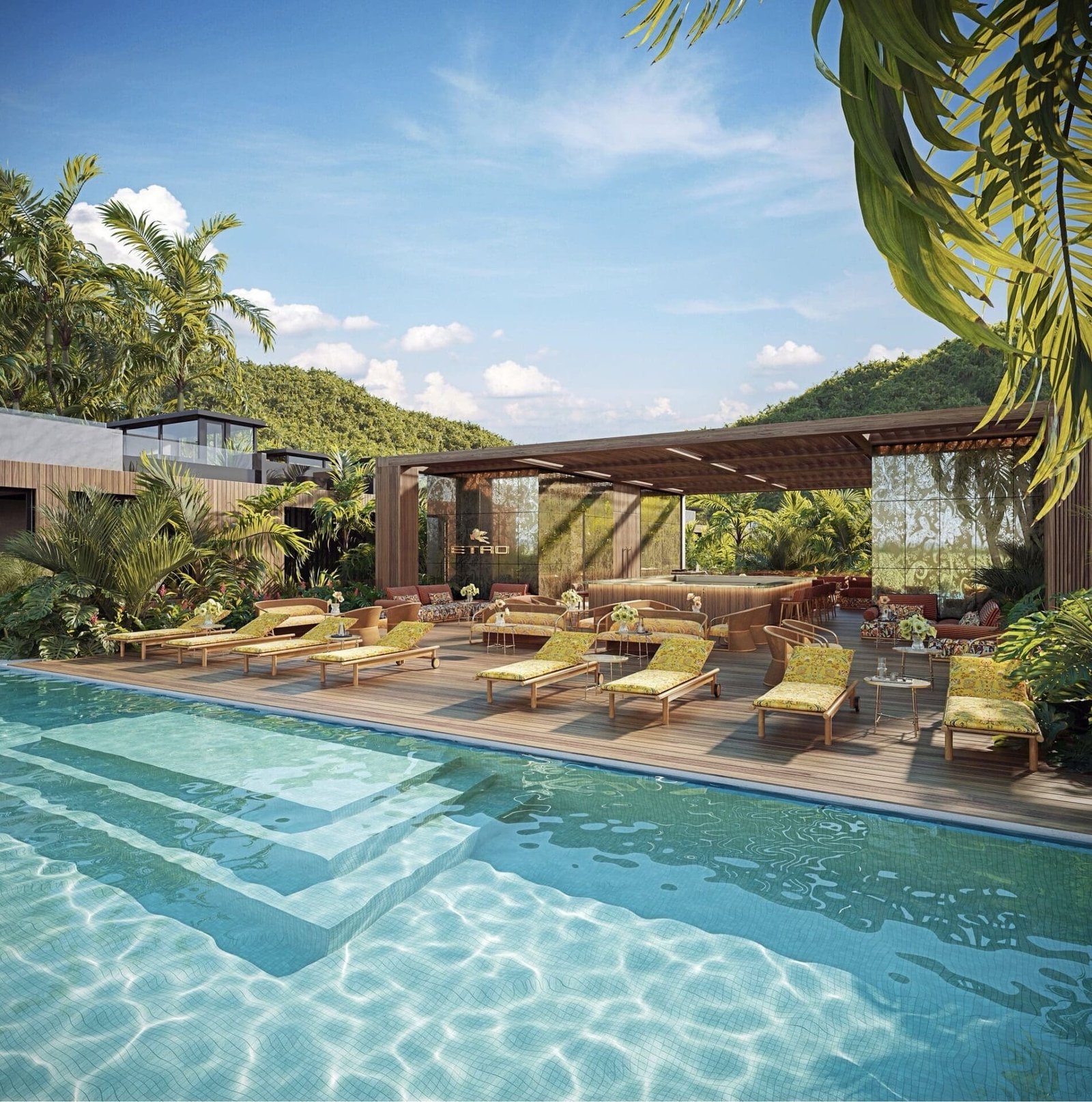 The aesthetic narrative within these walls is one of high-contrast harmony, where the weight of Italian craftsmanship—sculptural marble, artisanal woods, and lush velvet upholstery—is reimagined to breathe in a tropical climate. The interior design, a collaboration between global branded real estate specialists The One Atelier and ETRO Home Interiors, pulls directly from the brand’s extensive textile archives. Every surface tells a story; the newly revealed renders show a carefully layered composition of light and materiality that balances ETRO’s eclectic heritage with a newfound sense of spatial clarity. The color palette is a deliberate love letter to the island of Phuket, where sun-washed neutrals collide with deep oceanic blues and forest greens that mirror the dense jungle just beyond the floor-to-ceiling glass.