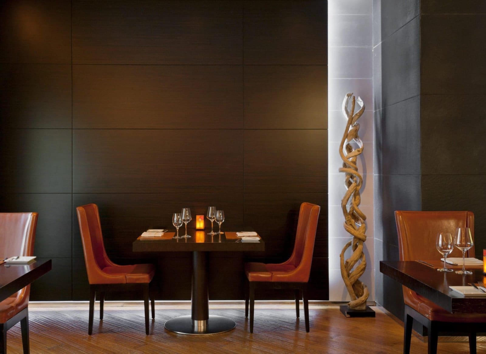 The restaurant boasts a stylish décor of dark wood, an open-view kitchen and slender dining tables making it the perfect place for a romantic evening or dinner with friends.