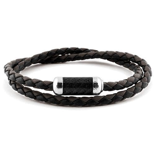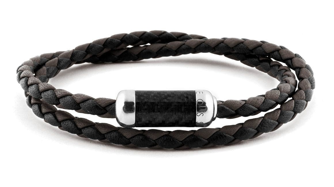 - The Montecarlo Bracelet’s clasp has a sheet of alutex foil covered with translucent enamel which is contrasted by sterling silver on both sides. It is combined with the dual-toned double wrap of genuine black braided Italian leather and is available in a wide range of colours.