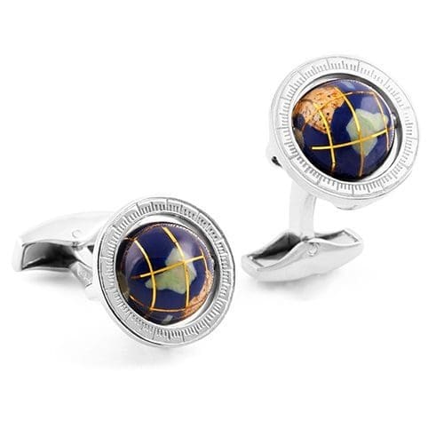 - Globe Cufflinks, a best-seller with a fully rotational colourful globe features an assortment of semi-precious stones that make up its different colourful components. It is contained within a circular sterling silver cage and has a whale back cufflink fitting.
