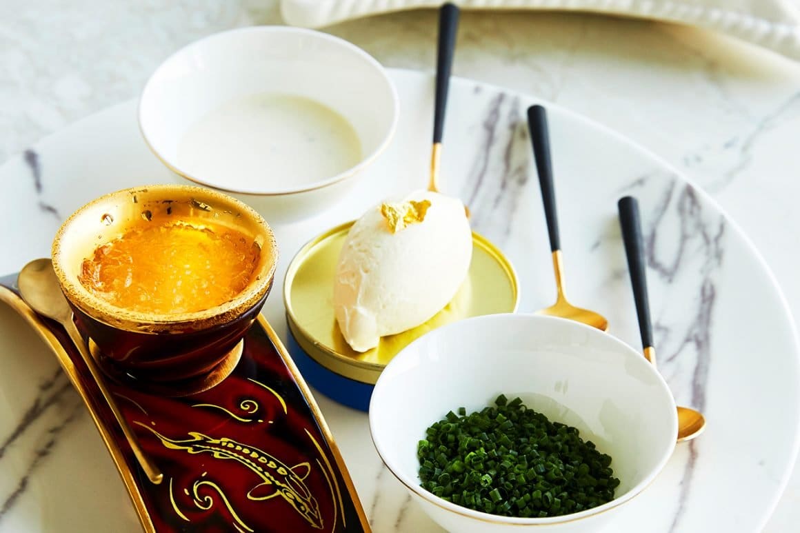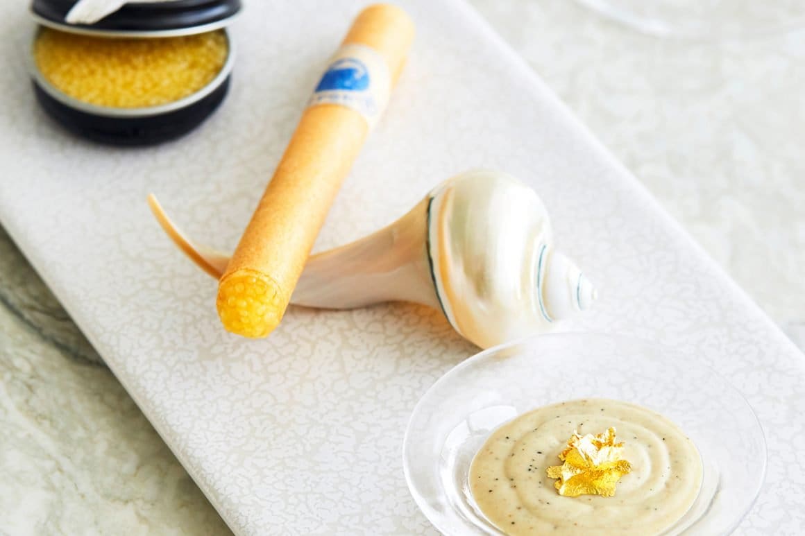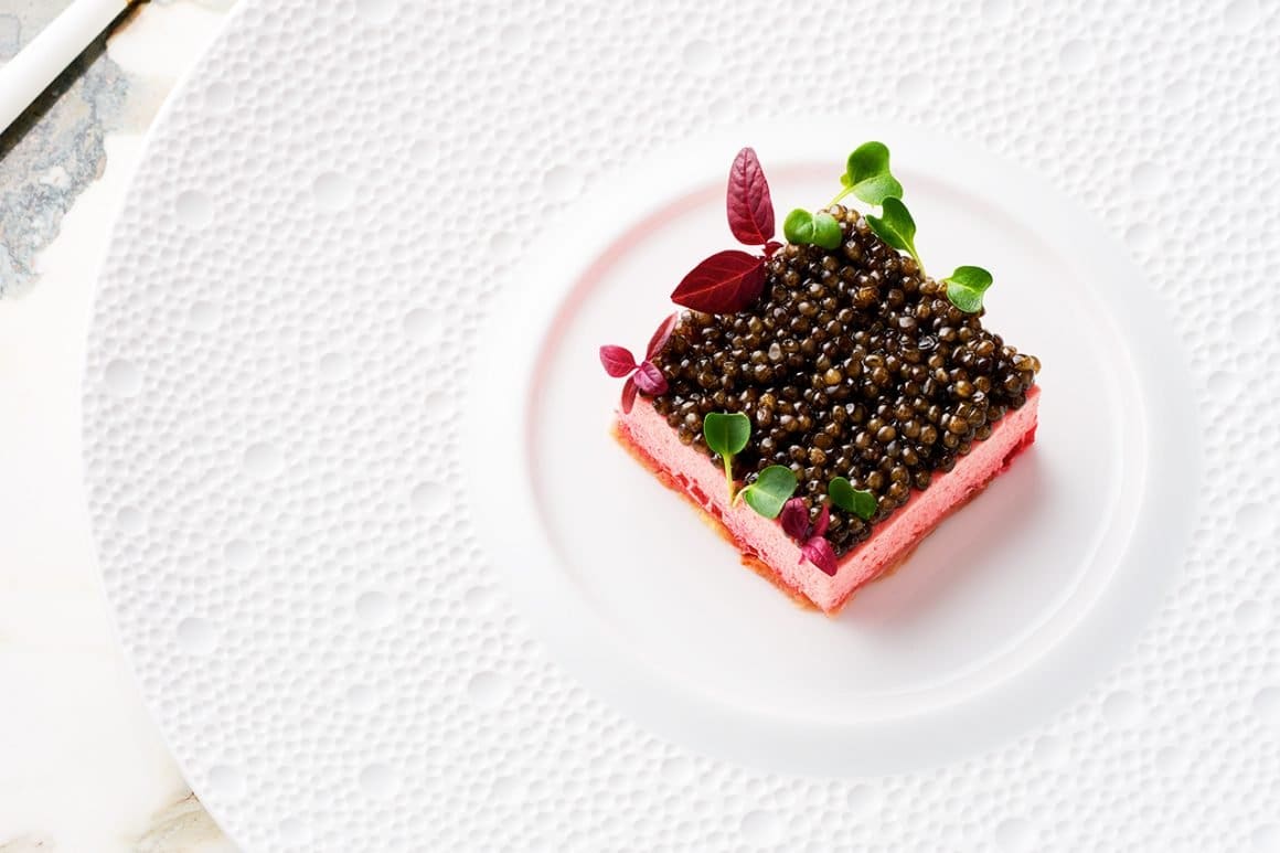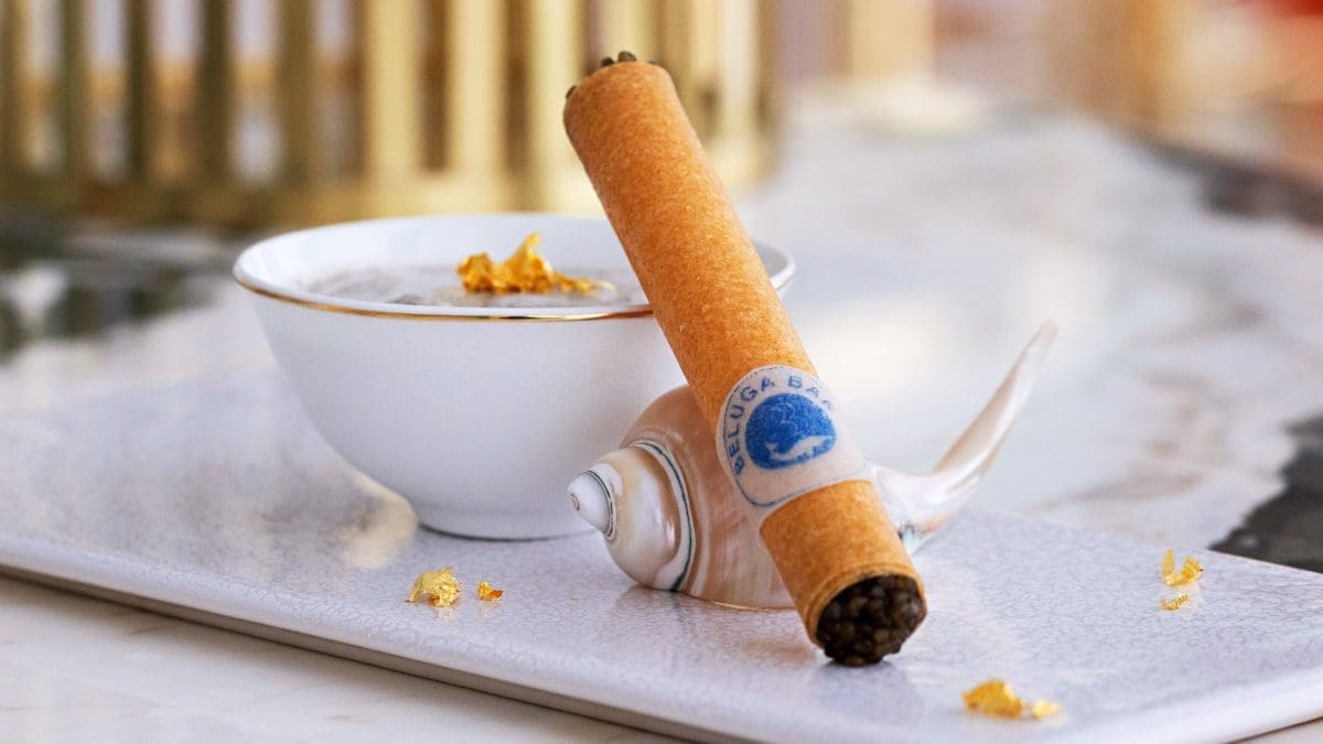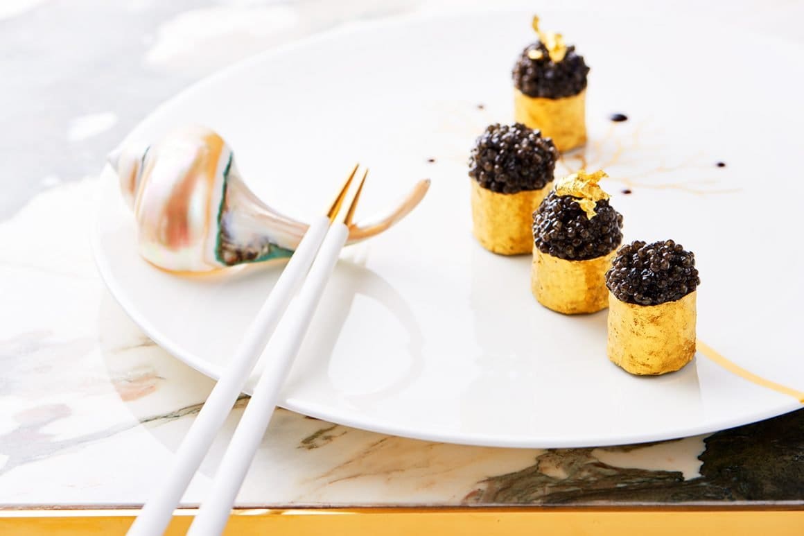The signature dish features the most expensive caviar in the world, the 24-karat Gold Almas Caviar, topped with 24-karat gold flakes. Other highlights include Tsar Alexei with salmon flower and white Sturgeon caviar vinaigrette, the Red Carabinero Tartar with salmon caviar, and the Caviar Aux Datte, a locally inspired dessert. Complementing the menu is an assortment of dry bubbly, tempting cocktails and a retail section of caviar to-go. The staff are trained to guide guests through their caviar choices.