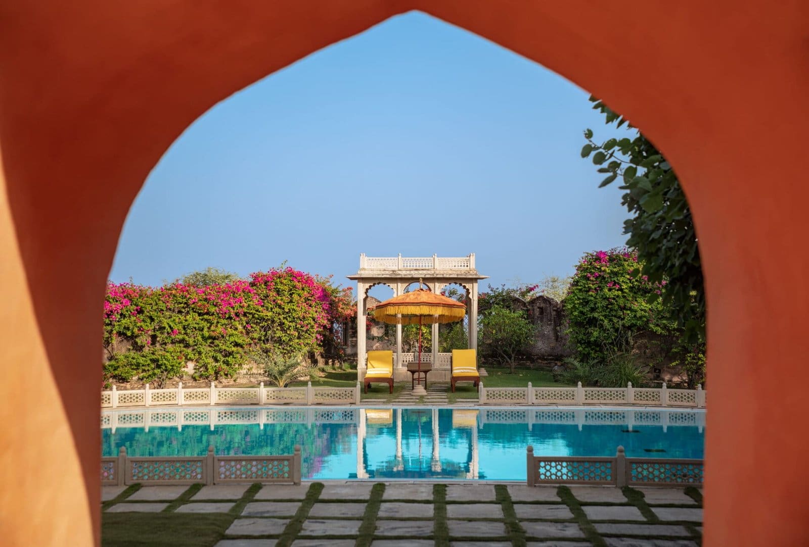 Sunlit courtyards, carved archways, elegant salons, and expansive terraces define the fort’s character. Antique furnishings, curated artworks, and original architectural details evoke its noble lineage. These elements are complemented by contemporary comforts and attentive, unobtrusive service that allows the space to feel like a private home rather than a hotel.