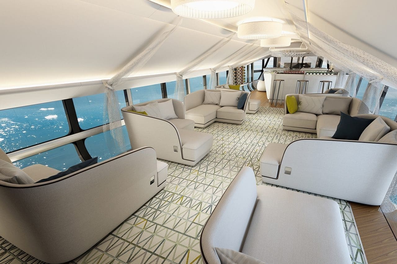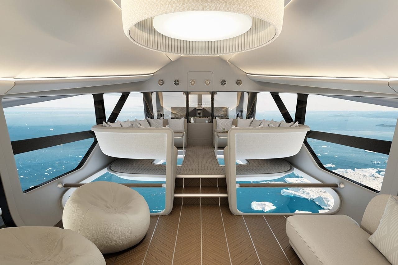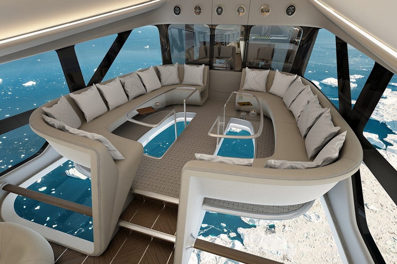 The luxury of space combined with the modular design approach allows for several types of luxuriously appointed suites to be incorporated into the design. Passengers will be able to enjoy horizon-to-horizon views throughout the aircraft, including the extensive ‘Infinity Lounge’ where “the sofas, generous in proportion for total relaxation and with the unique ability to rotate, allow perfect outward vision through the massive panoramic windows, or they can turn to face inwards for evening social events,” says Howard.