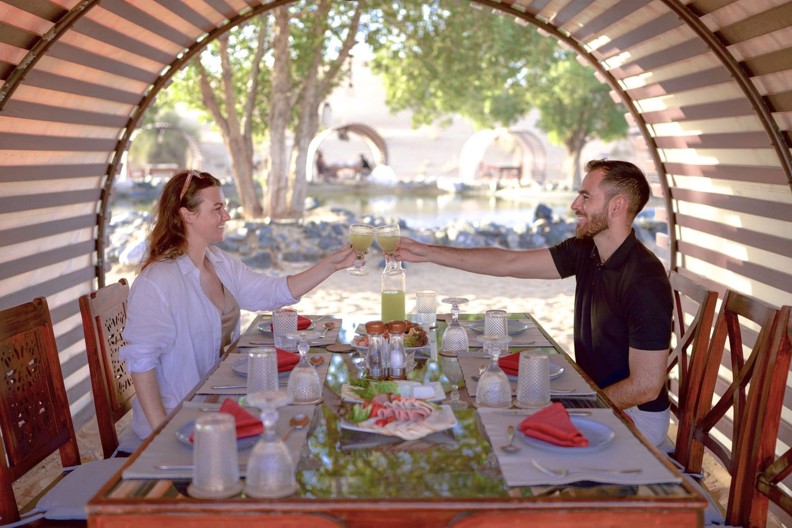Nestled in shaded cabanas, the dining experience combines serenity and indulgence, creating the perfect finale to an unforgettable morning.