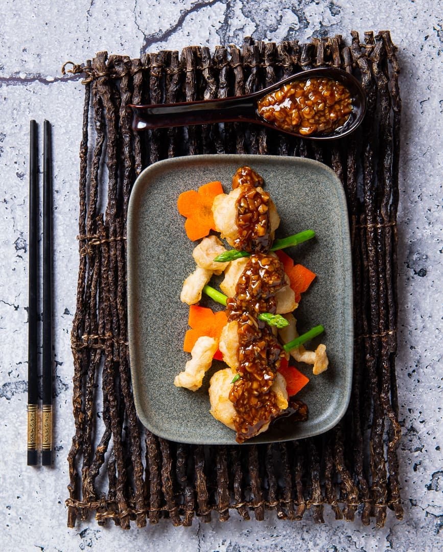 • Deep-Fried Tiger Prawns with Spicy Sichuan Sauce