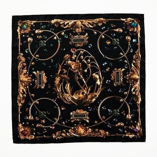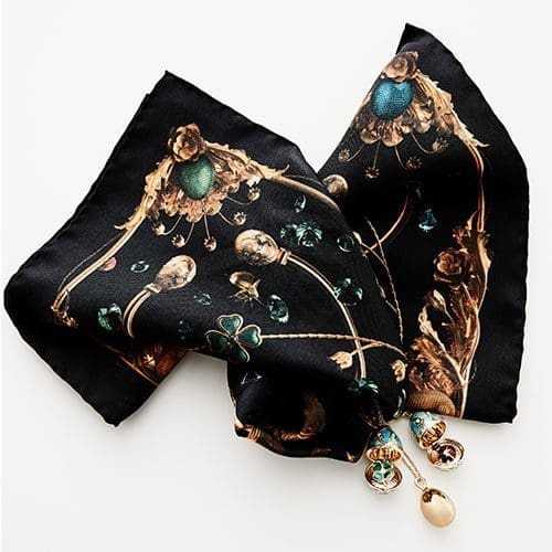 Initially envisaged as a gift for Fabergé’s VIP clients, the result proved so enchanting that a limited edition of 150 scarves were created and are for sale through Fabergé’s website. McQueen has designed a 120x120cm scarf and 42x42cm pocket square, which embody the spirit of everyday objects from pre-revolutionary Russia. Both are 100% silk and handmade in England.