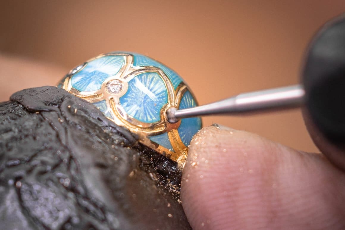 Gustav Fabergé, a Russian Master Goldsmith with French ancestry, founded the House of Fabergé in 1842 in St Petersburg. However, it did not distinguish itself until Gustav’s eldest son Peter Carl Fabergé took over as the business and creative head. Carl – educated at some of the best institutes and apprenticed with some of the best jewellers – took the bold decision to become a design-led artist-jeweller whose creations glistened with colour – through the use of gemstones and by reviving the lost art of guilloché enamelling. He also sought after and employed the finest craftsman to bring his designs to life.