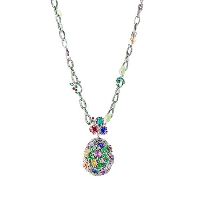 Emotion is a bold and expressive collection while Fabergé Imperial evokes the splendour of the Imperial Romanov court. The Colours of Love are for the special occasions. These collections feature objects encrusted with diamond, pearls and coloured gemstones. Fabergé Rococo is a sculptural collection which takes inspiration from the gold scrolls of 18th century Rocaille Egg. The ‘Heritage’ collection draws inspiration from Fabergé’s historical masterpieces and includes such signatures as guilloché enamelling and hand-engraving. Treillage pays homage to the 1892 Fabergé Diamond Trellis Egg. It features tactile quilting on rose and white gold objects which are decorated with diamonds or coloured gemstones. The late Frédéric Zaavy, an exceptional Parisian jeweller, collaborated in the creation of the eponymous one-of-a-kind high jewellery collection.