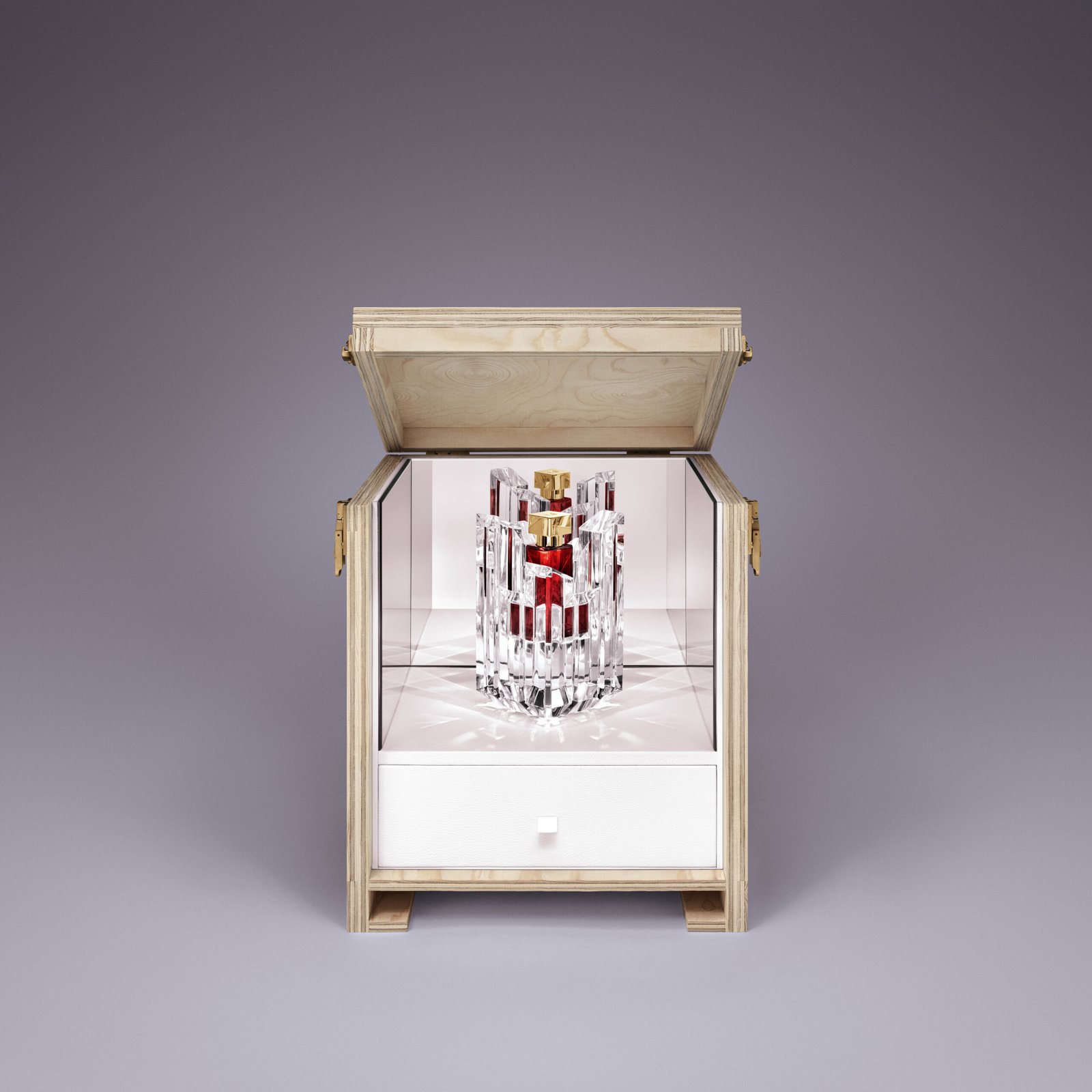 To protect the flacon, a red lambskin case by Atelier Renard and a silk pouch embroidered with pearls by Maison Lesage extend the ritual of excellence. Even the presentation chest—a work of spruce wood, white taurillon leather, and beveled mirrors—was handcrafted by eight artisans to cradle the perfume like a relic of light. Possessing Baccarat Rouge 540 Édition Millésime is to enter a private circle of connoisseurs, with privileged access to refills, bespoke services, and invitations to the Maison’s most intimate events.