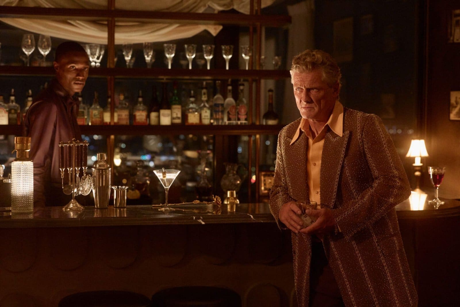 The fashion, at once opulent and precise, is inseparable from the narrative’s emotional core. AMIRI’s palette infuses the city’s architecture and nightscape, transforming neon-lit streets into backdrops for tailored silhouettes and decadent textures. From sleek Seventies-inspired suits and embroidered velvet bombers to crochet gowns that catch the light with every turn, each look is a lens into the characters’ souls. The collection’s pieces don’t merely complement the scenes—they shape them, embodying feeling, history, and aspiration.