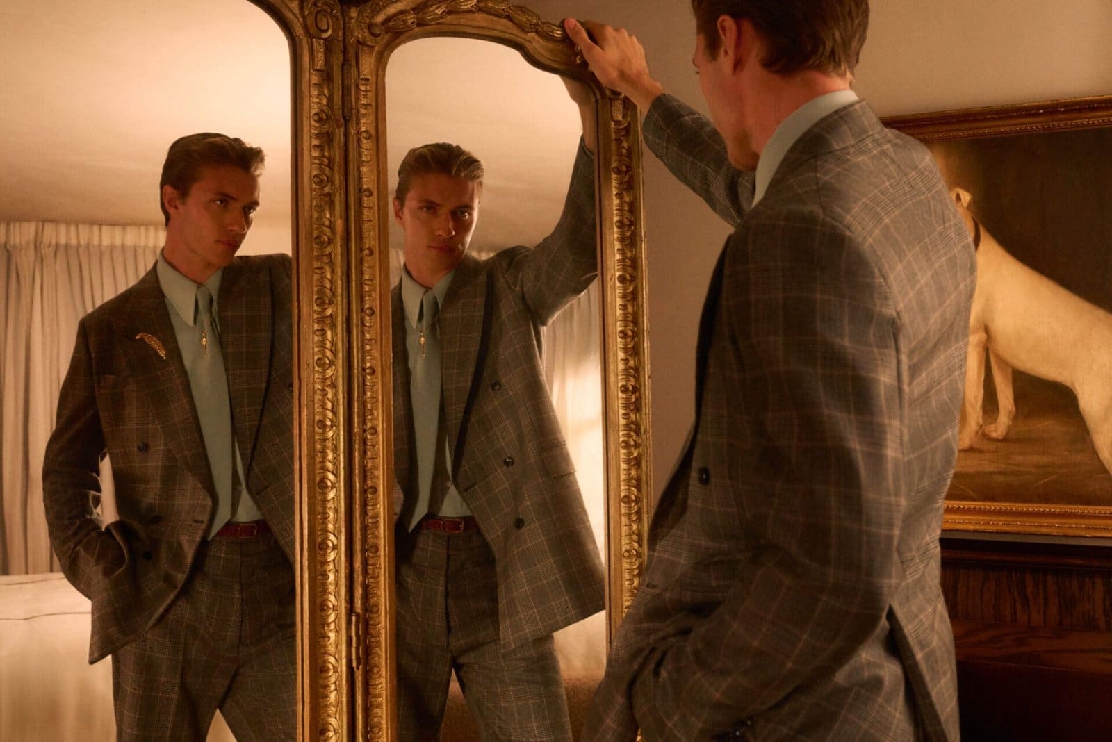 Anchoring the campaign is the iconic Hollywood Roosevelt Hotel, an art deco gem on Hollywood Boulevard steeped in cinematic lore. The hotel’s storied past breathes life into every frame, its corridors and suites filled with echoes of legends past and whispers of the present. The images trace lives lived between elegance and yearning—hotel rooms, limousines, dimly lit lounges—a universe suspended between celebration and solitude, the night before the morning after.